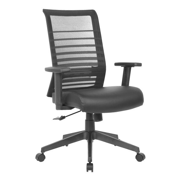 Boss Horizontal Striped Mesh Back Task Chair with Antimicrobial Vinyl Seat and Adjustable T-Arms, Black (B6566AM)