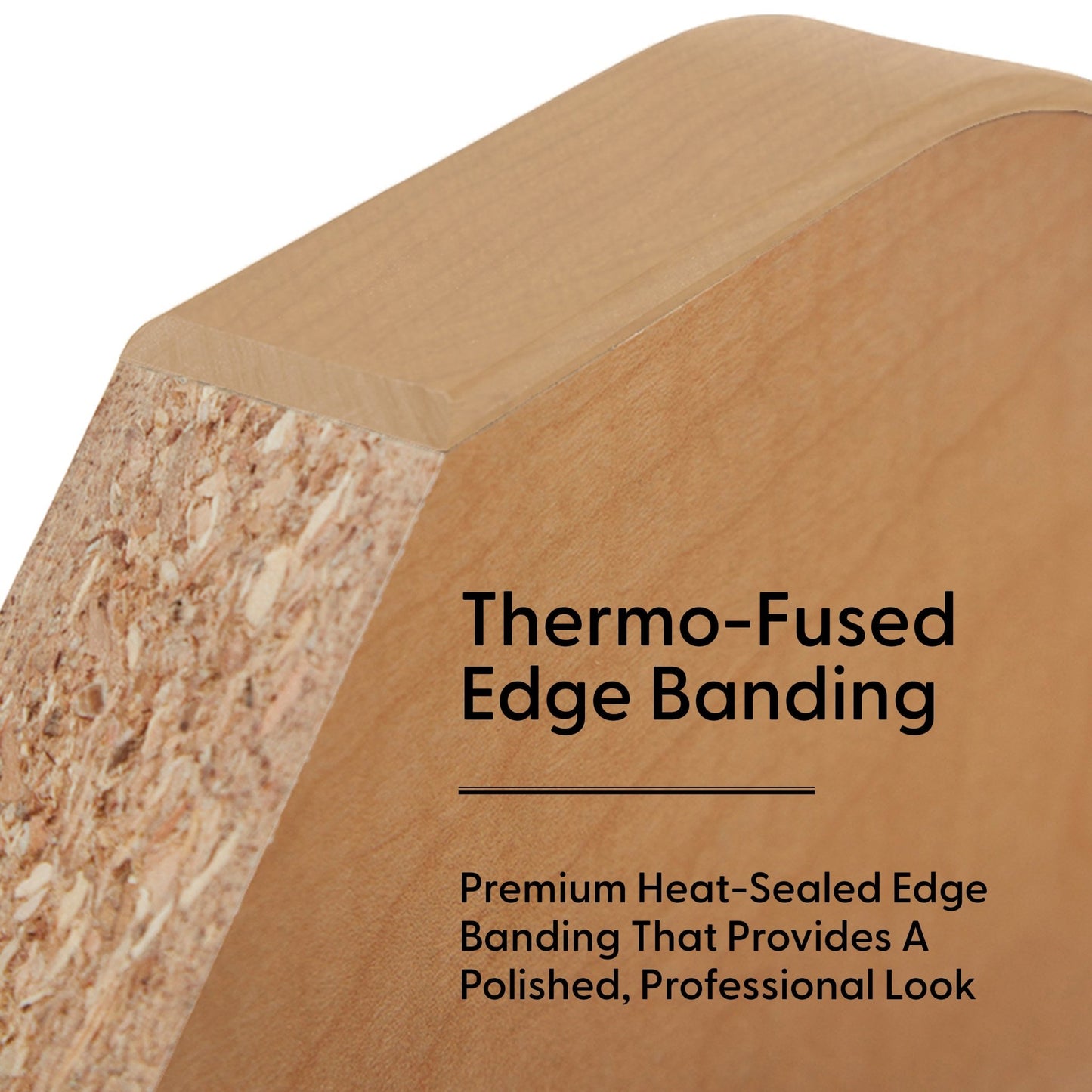 - Thermofused edge: high-quality edge banding is heat-sealed for a seamless finish that helps to extend the life of the table top