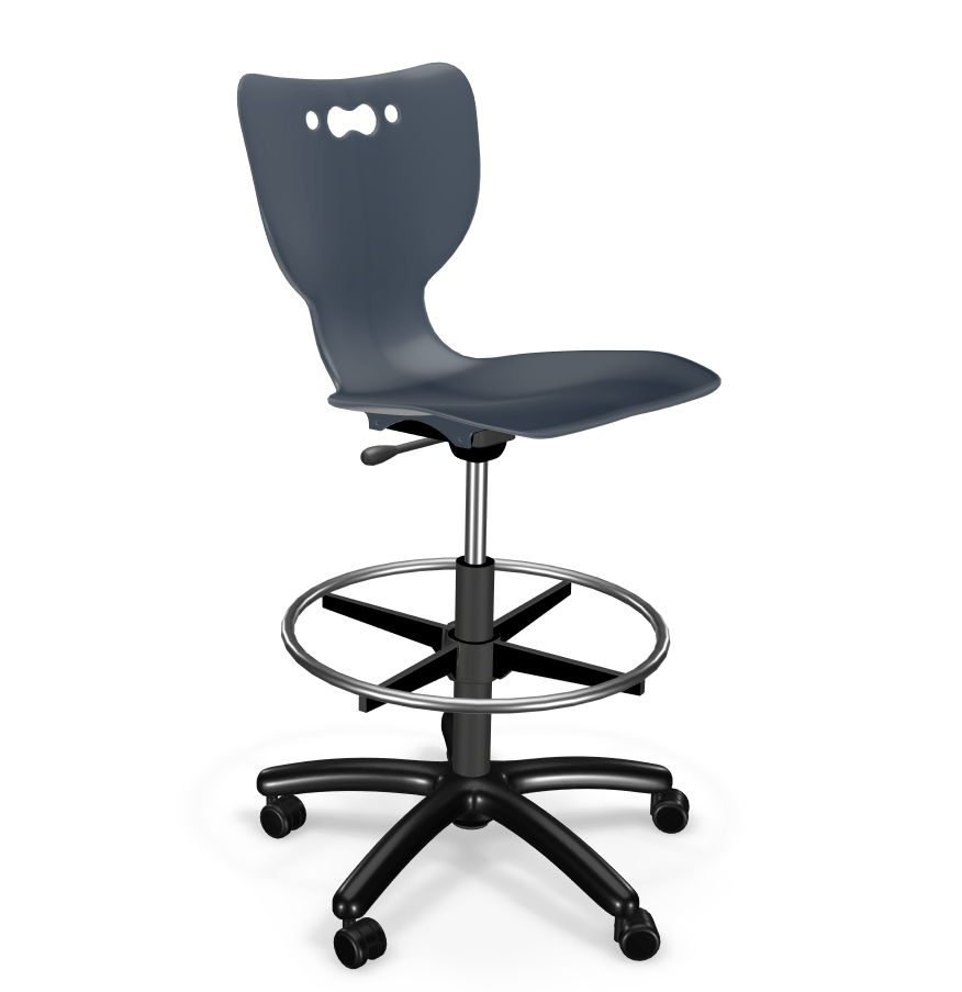 The Hierarchy 5-Star Stool by Mooreco combines modern styling with traditional task chair stability. These stools have a heavy-duty plastic 5-star base and five rolling casters that will last for many years. The ergonomic seat features an integrated carry handle for simple transport and setting up the learning environment, as well as easy position changes. Stools have a pneumatic height adjustment range of 23 to 33 inches.