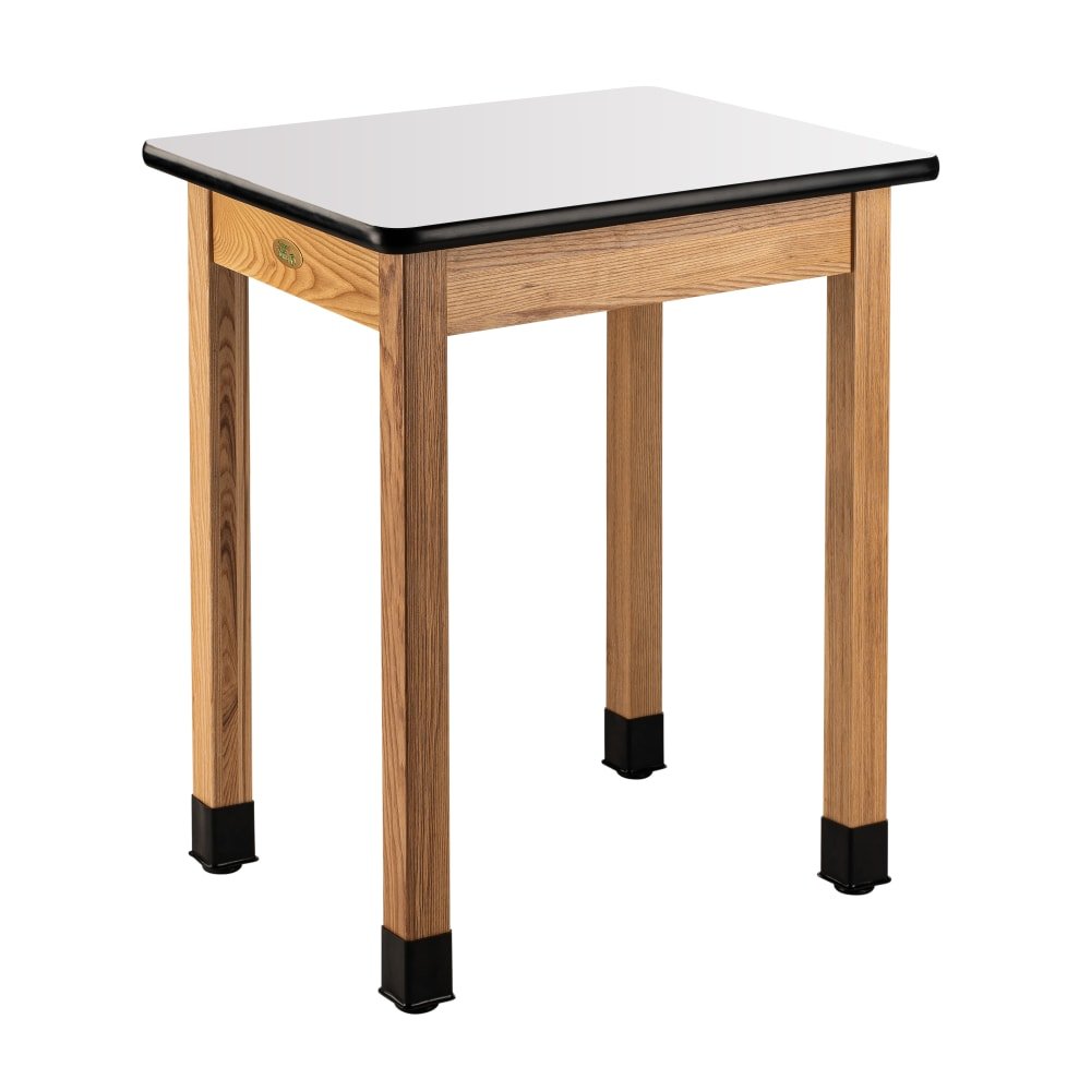 The NPS SLT Science Lab Tables have perfect chemistry with any science classroom. These paragons of endurance are built with solid ash framework, side panels and options of tabletop. The work surface is of solid black, firmly secured, high-pressure laminate, resistant to water and 13 commonly-used laboratory chemicals. Robust legs are spot-welded to the frame with metal-on-metal double-bolts on 13-gauge steel corner braces for maximal strength and durability. Feet are outfitted with rubber liquid-protective boots and adjustable glides for accurate floor leveling. The SLT meets MAS Certified Green environmental industrial standards.