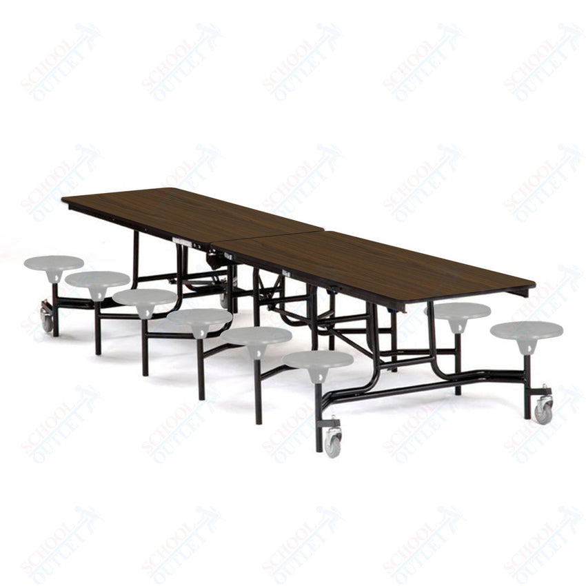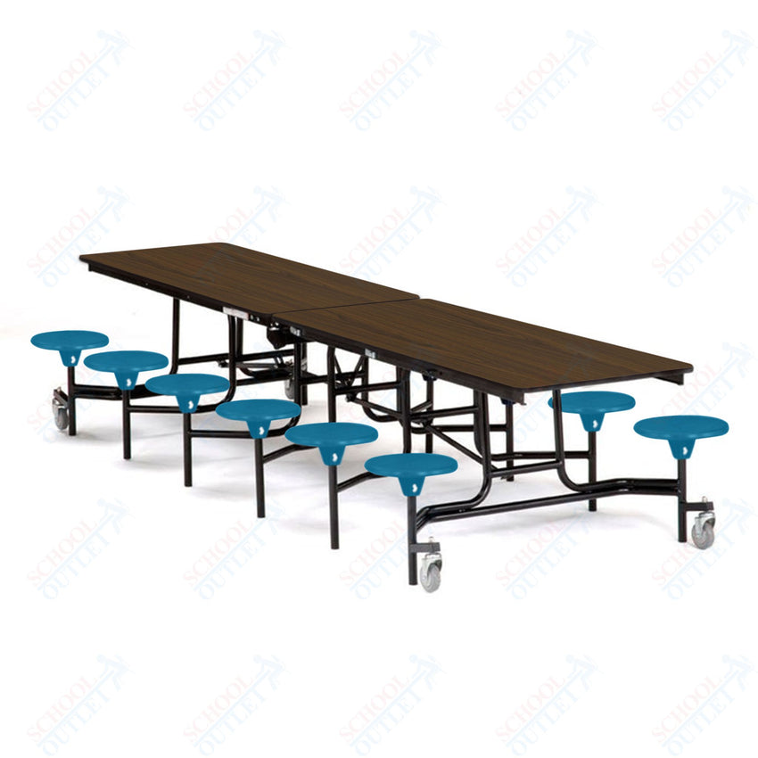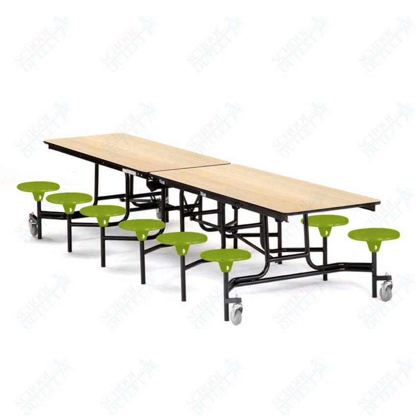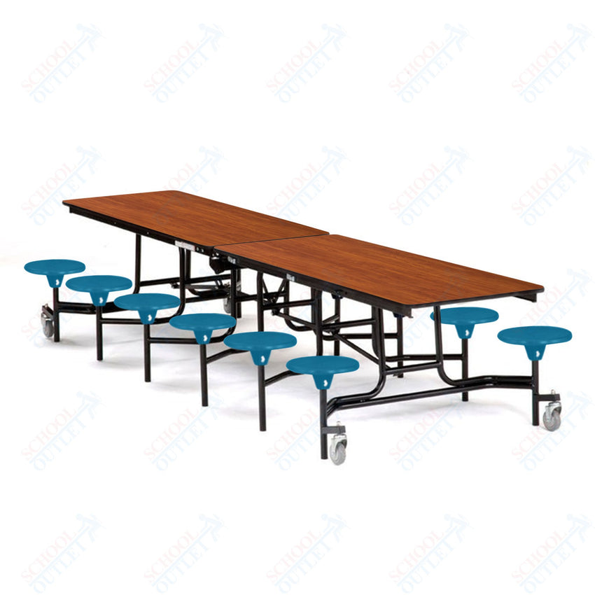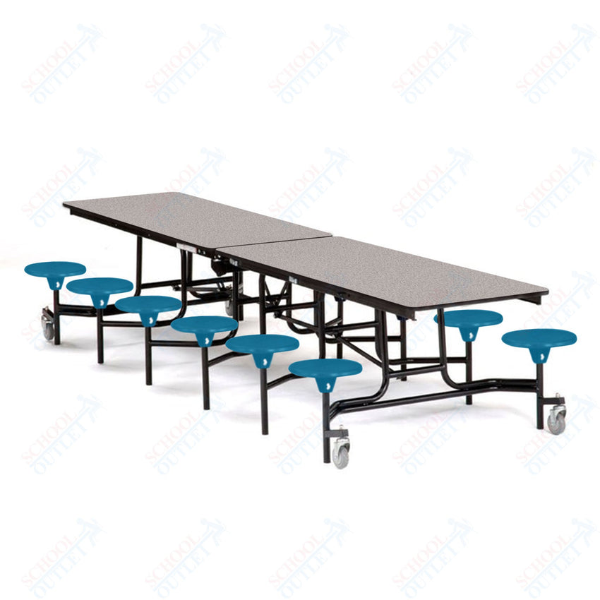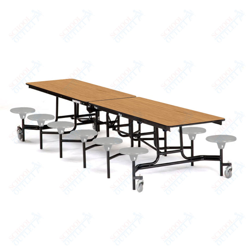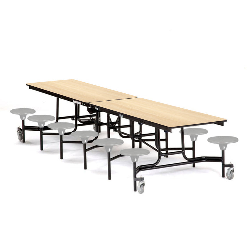 Mobile Cafeteria Lunchroom Stool Table - 30" W x 12' L - 12 Stools - Particleboard Core - T-Molding Edge - Chrome Frame