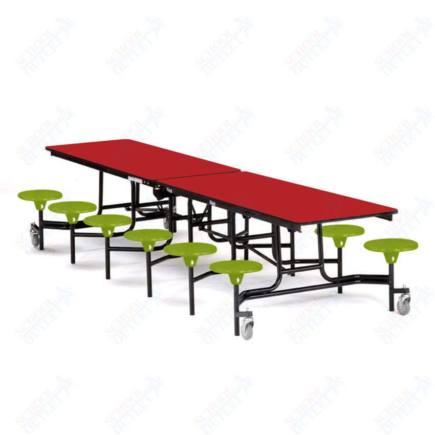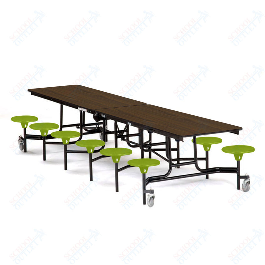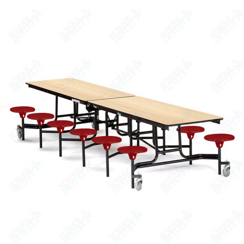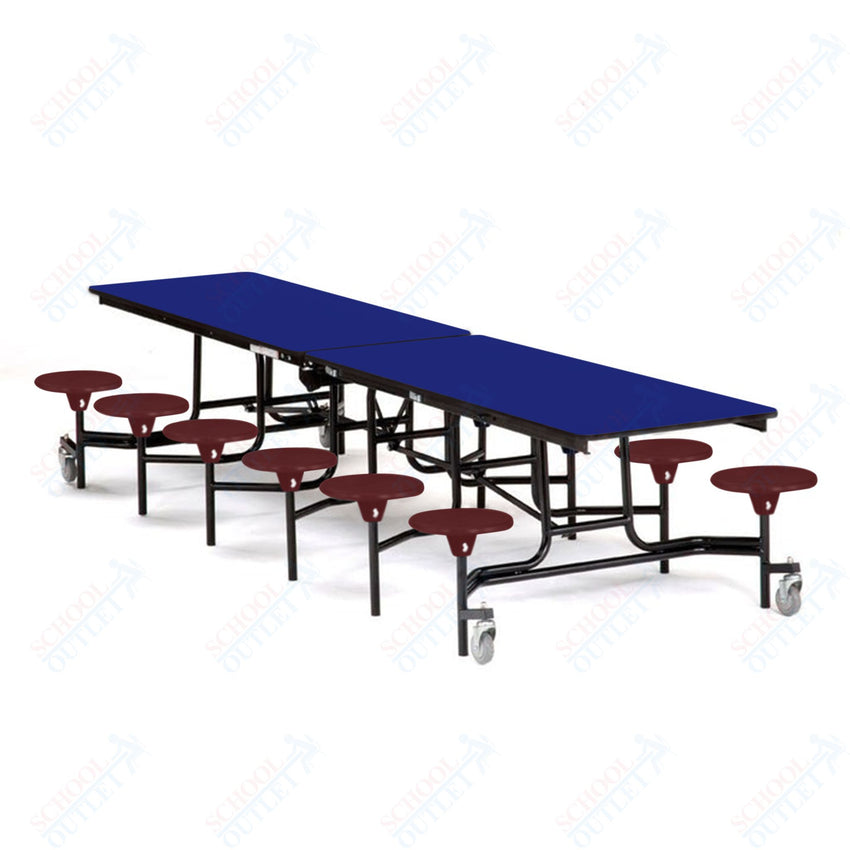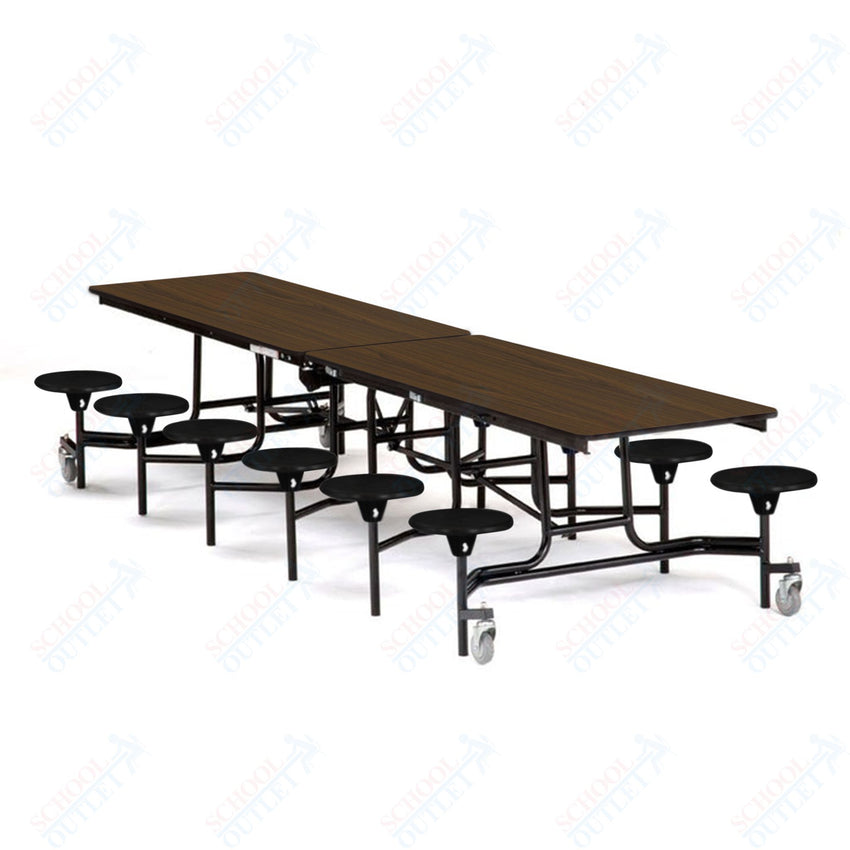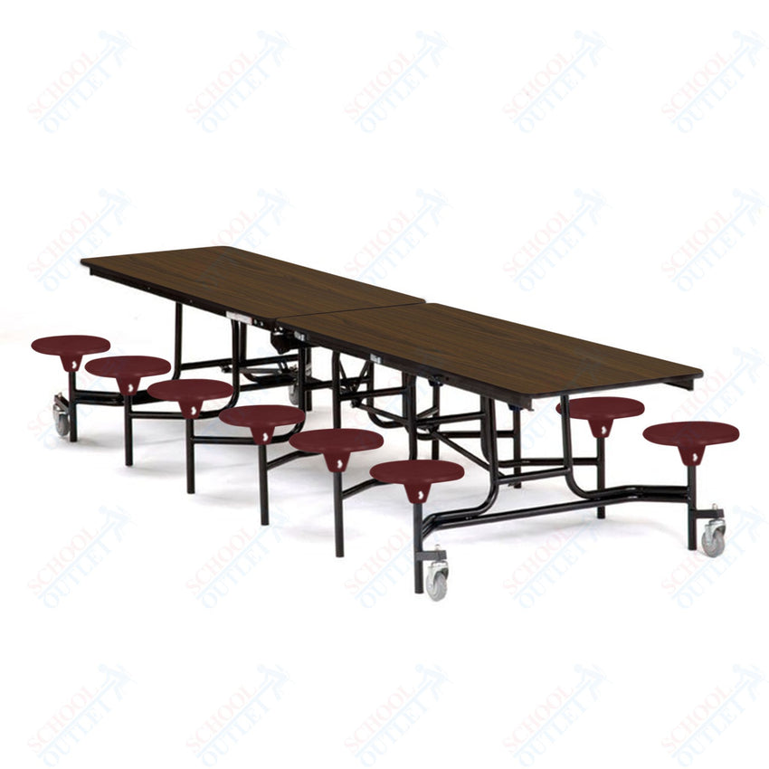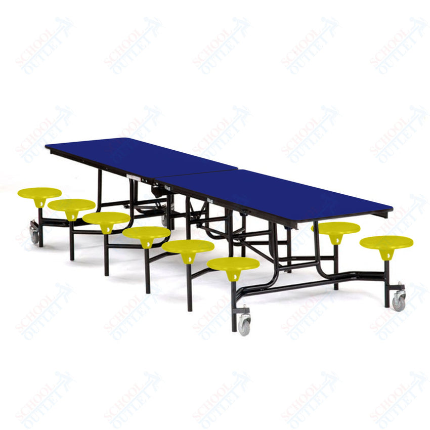 Mobile Cafeteria Lunchroom Stool Table - 30" W x 12' L - 12 Stools - Particleboard Core - T-Molding Edge - Chrome Frame