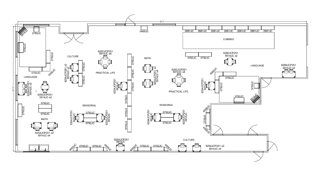 - Child-Sized Furniture - Appropriately scaled tables and Ladderback Chairs that promote independence and proper posture