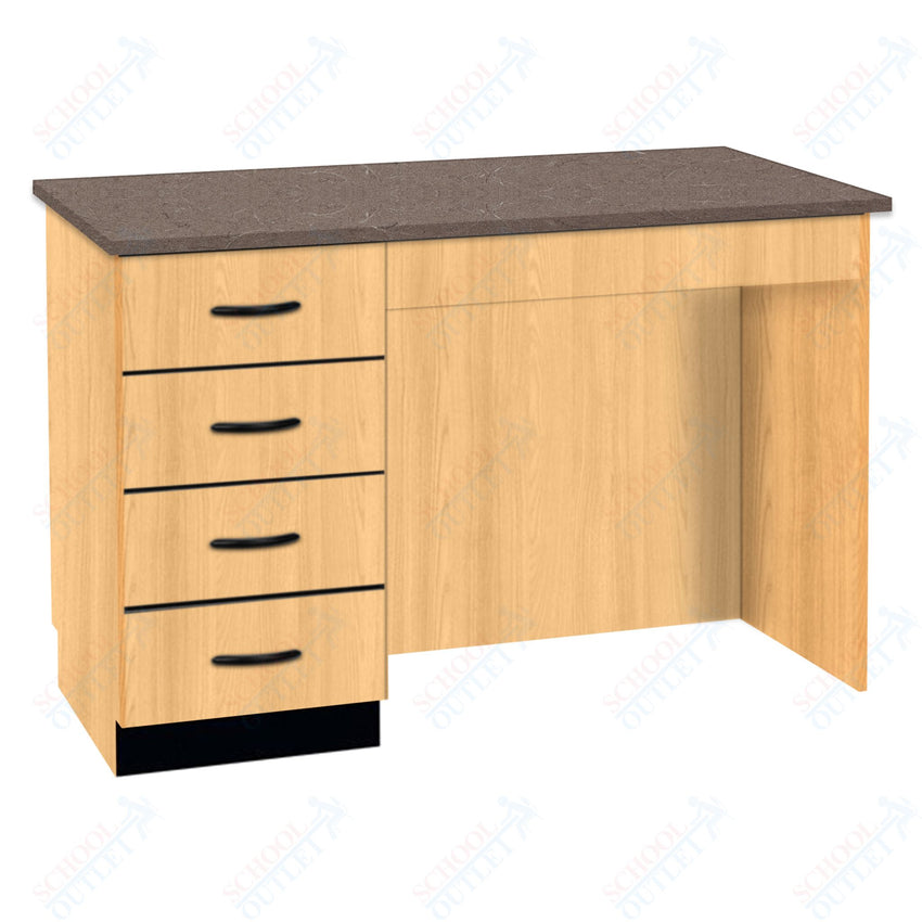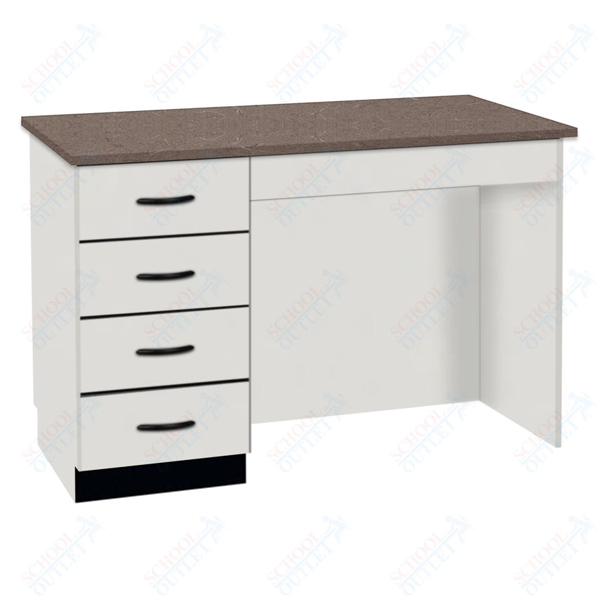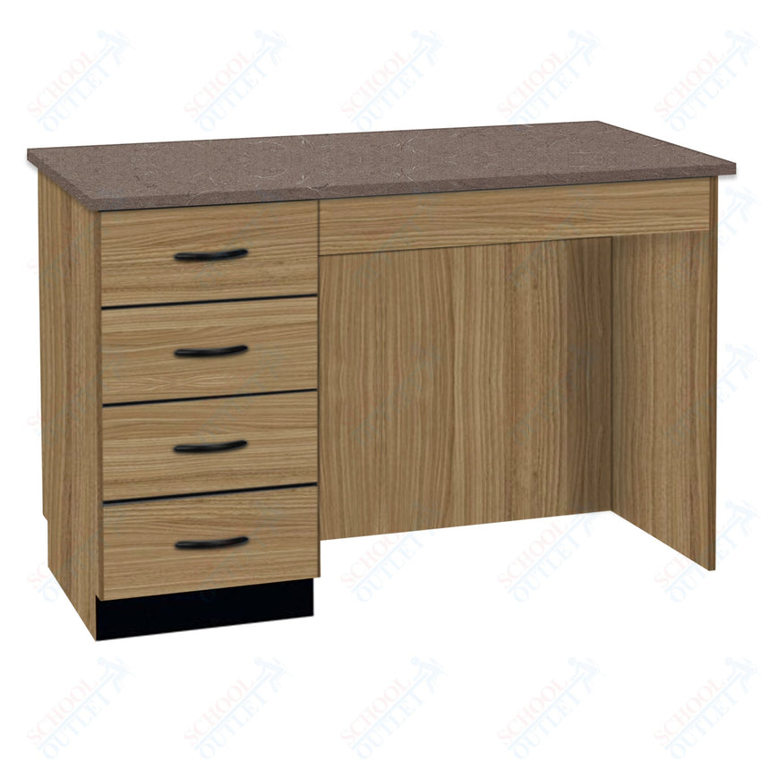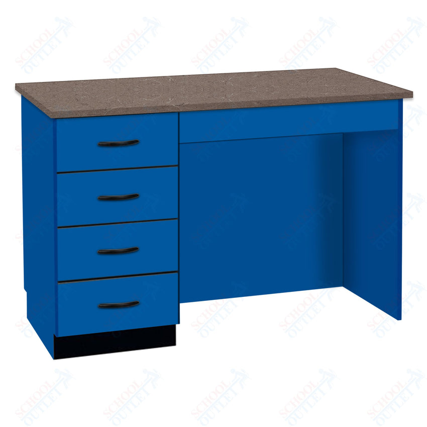 A compact desk is the perfect fit for a small area! This desk provides a great space for instructors to grade papers and complete paperwork. Features include four locking drawers and knee space. The drawers are specially reinforced to hold over 100 pounds each.