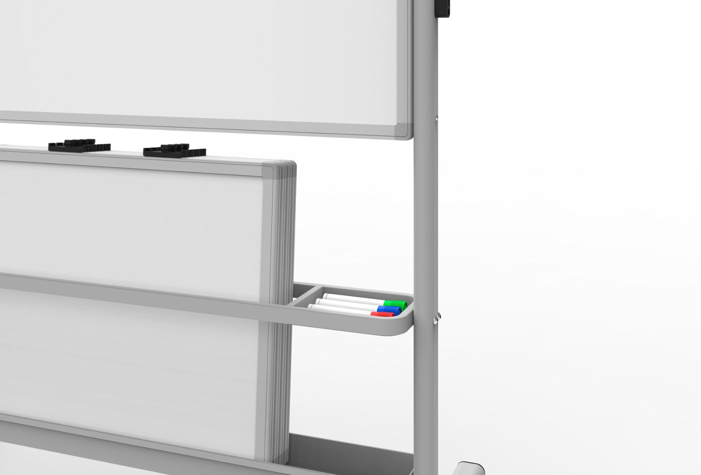 - Two-sided whiteboards double the writing surface