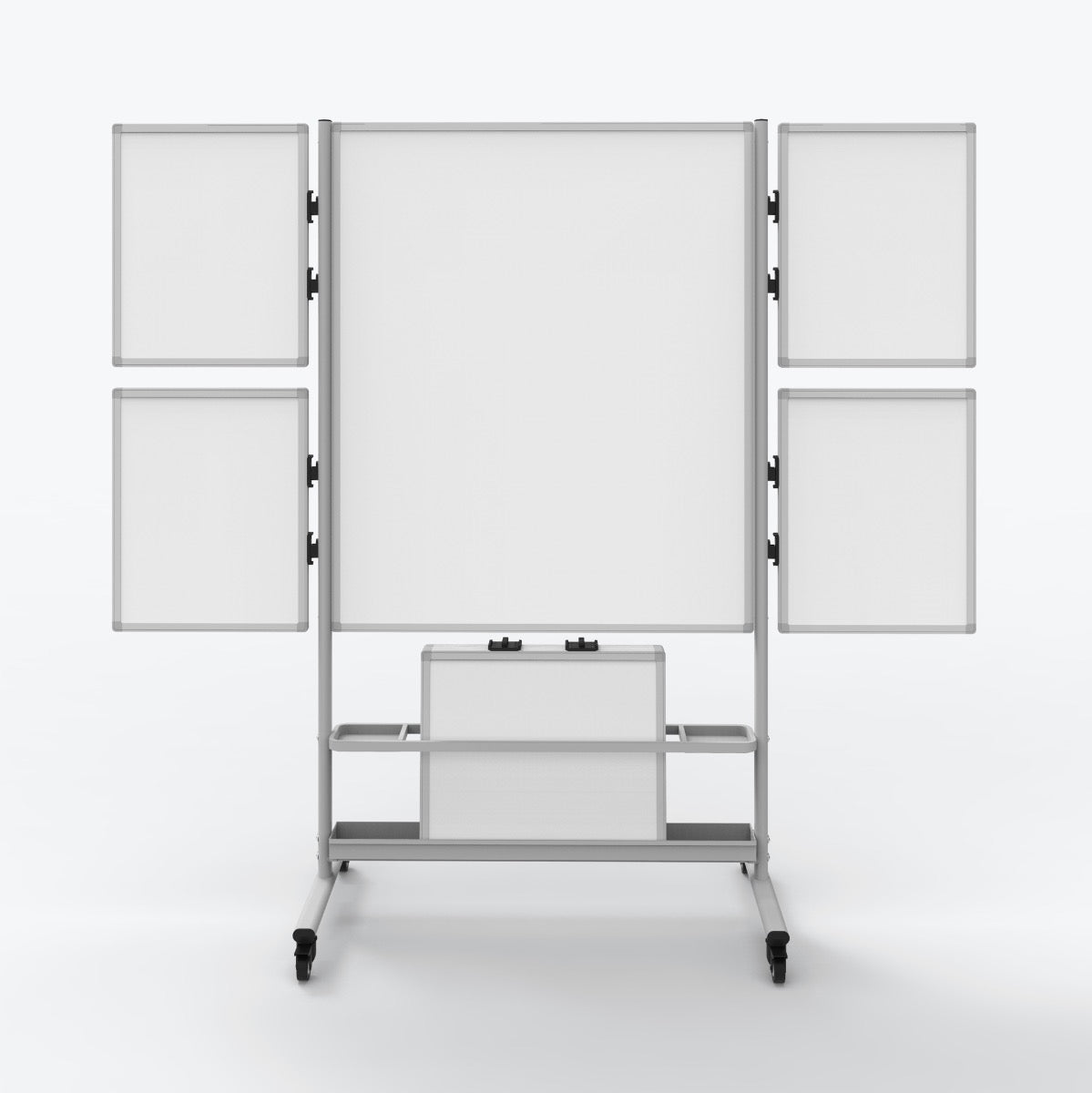 - Large magnetic whiteboard with four attachable small whiteboards