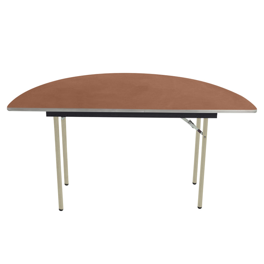 AmTab Folding Table - Plywood Stained and Sealed - Aluminum Edge - Half Round - Half 48" Diameter x 29"H (AmTab AMT-HR48PA)