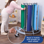 - Mobile Design: This paper roll holder rolls on six 2-inch locking casters to allow teachers and caregivers to easily move the rack from space to space or to store it when not in use