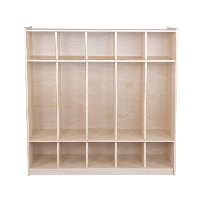 This unit offers a versatile solution for any home or classroom setting. When placed in entryways and mudrooms, it provides a place for kids to hang coats, backpacks, and store shoes. The 10 two-sided hooks give pretend play spaces a place to hang costumes. Upper cubbies can hold hats, feather boas, make-up, and more. Pretend play shoes, belts, and other accessories can be housed in lower cubbies.
