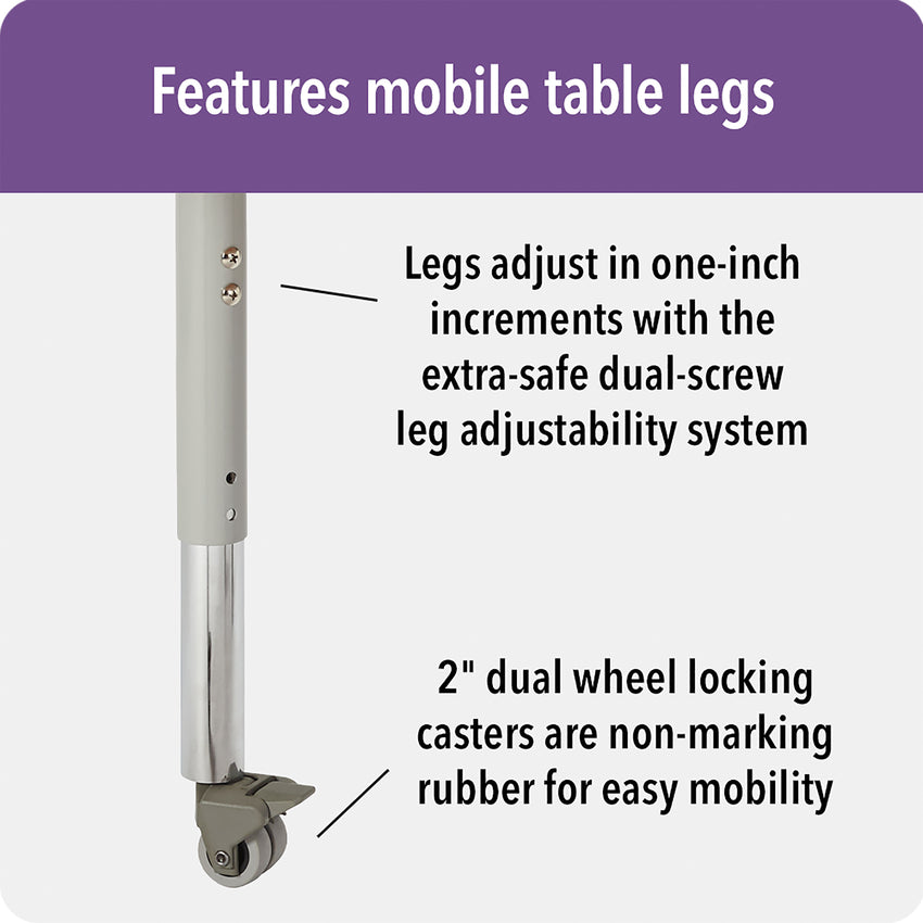 Keep it simple with a square table. Accommodates up to 8 chairs. The legs adjust from 20” to 31” high, are 2” thick, and feature heavy-duty casters. Freckled gray tabletop with blue TRUEdge, gray legs, and gray casters.