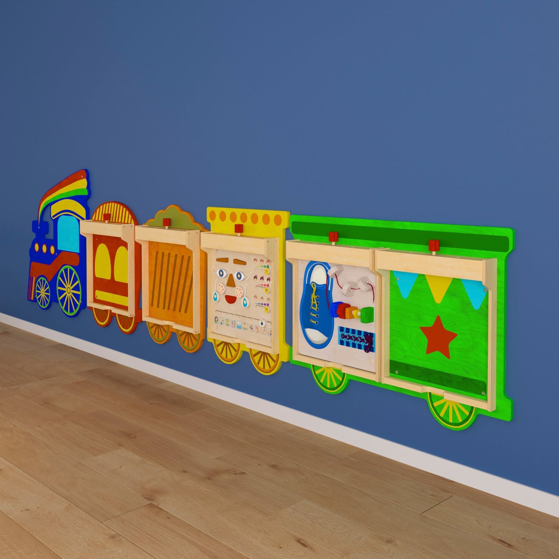 Bright Beginnings Commercial Grade Wooden Train STEAM Wall System with 5 Accessory Panel Holders