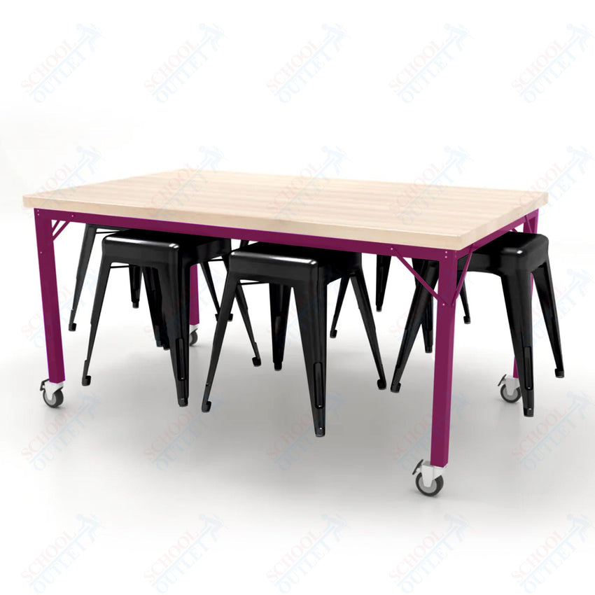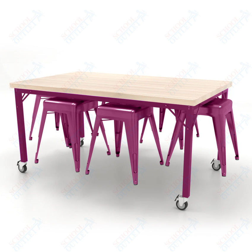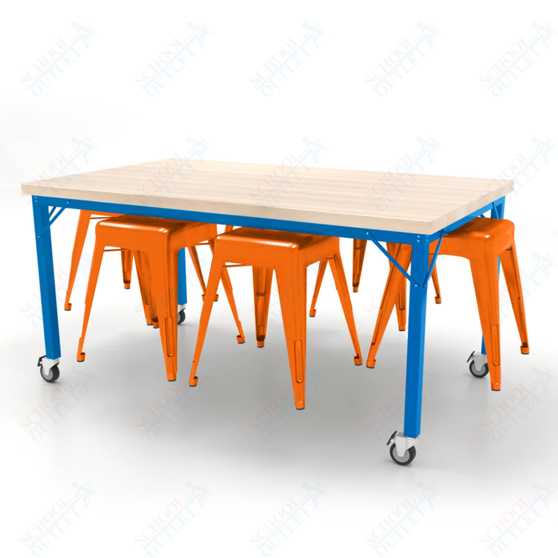 CEF Brainstorm Workbench 30"H with Butcher Block Top and Steel Frame, 6 Magnetic Metal Stools Included, for 3rd Grade and Up