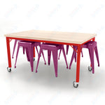 The Brainstorm Workbench is an awesome addition to a classroom, maker space, or any collaborative space where ideas flow! Our ever-popular butcher block top is mounted atop a four-post rectangular steel frame with corner gussets for added stability and strength. It's offered in 48 different sizes and comes standard with casters for ease of mobility. The Brainstorm Workbench is a basic essential when designing the perfect classroom or maker space and is now offered with magnetically mounted stool seating packages!