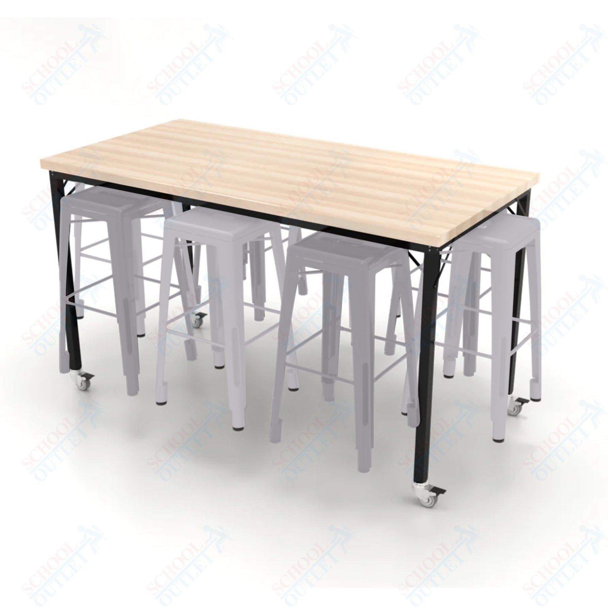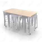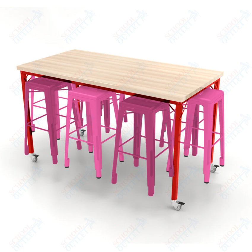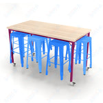 CEF Brainstorm Workbench 42"H with Butcher Block Top and Steel Frame, 8 Magnetic Metal Stools Included, for 6th Grade and Up