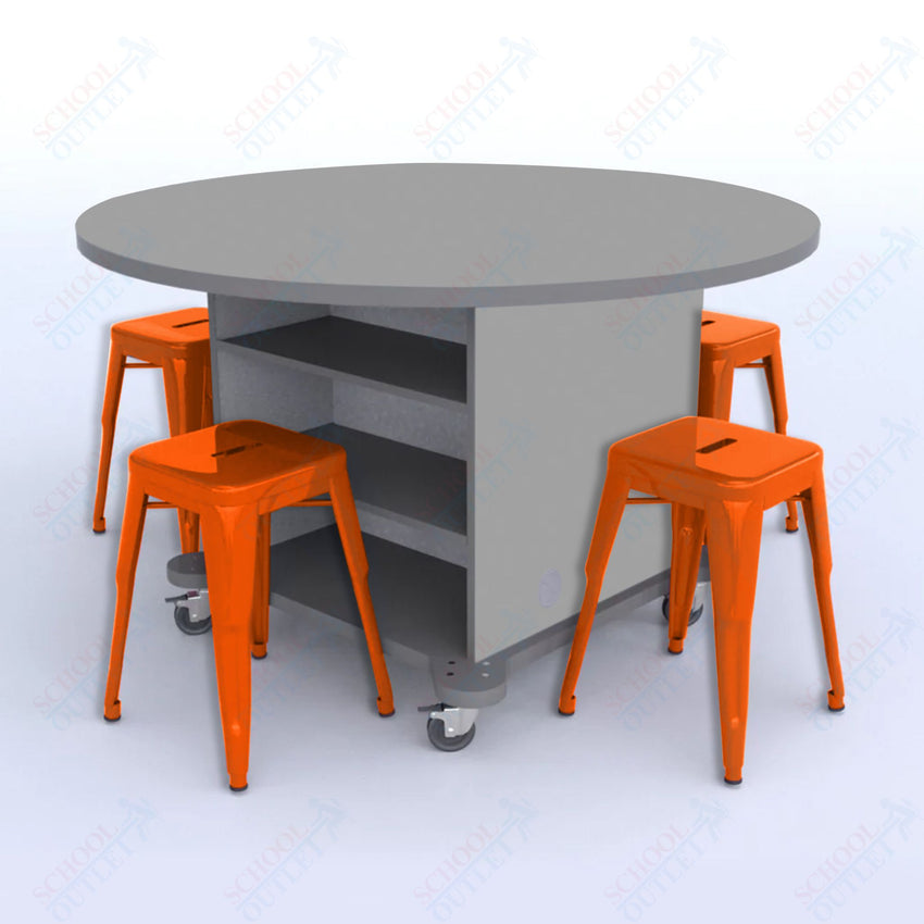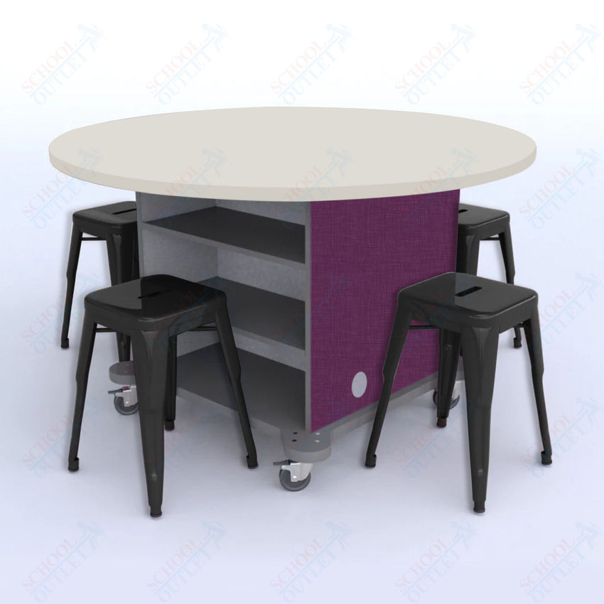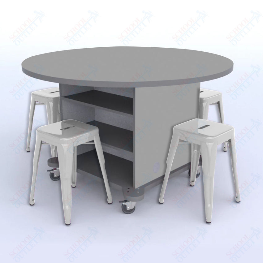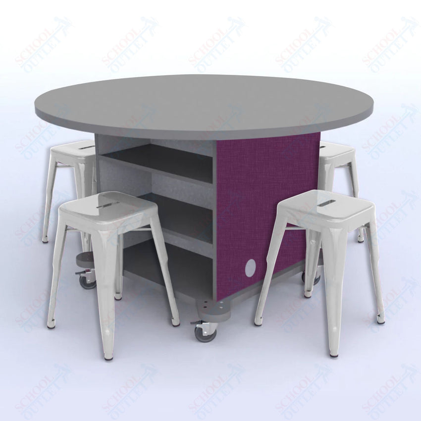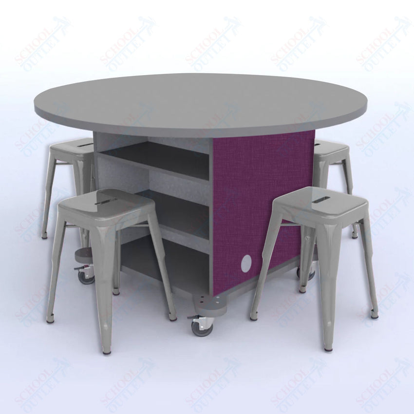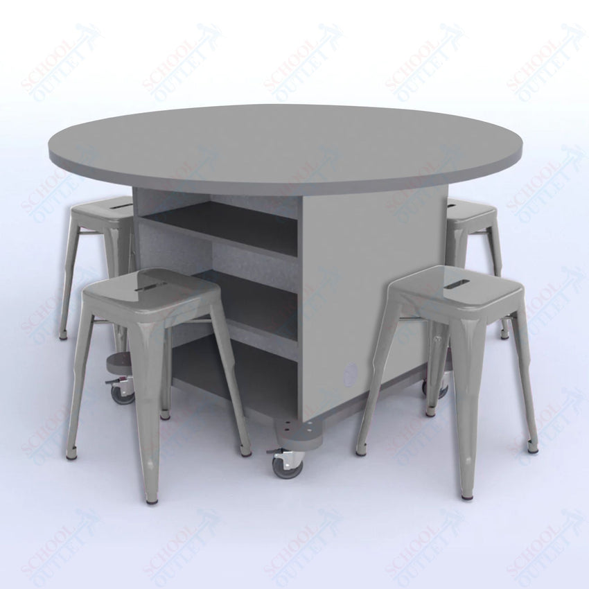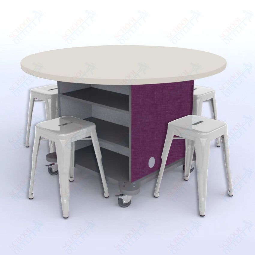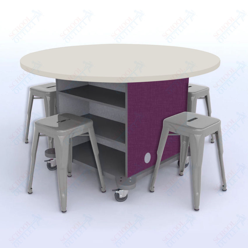 CEF Creation Cube Double-Sided Storage Table - 30"H, High-Pressure Laminate Base and Round Top - 4 Metal Stools Included