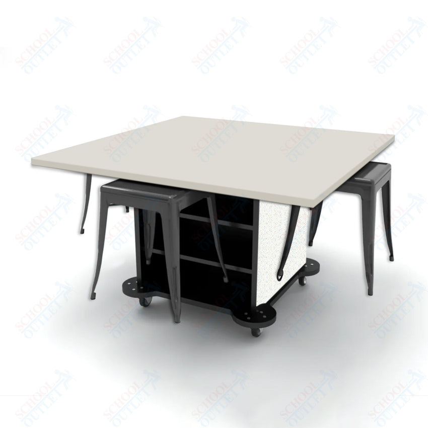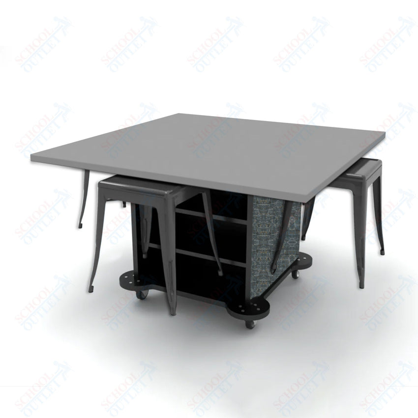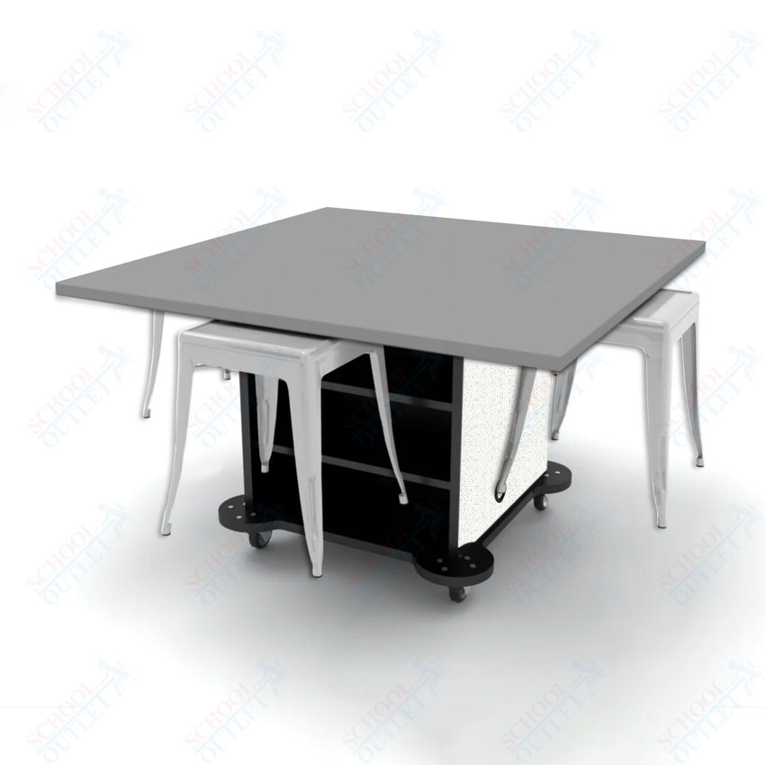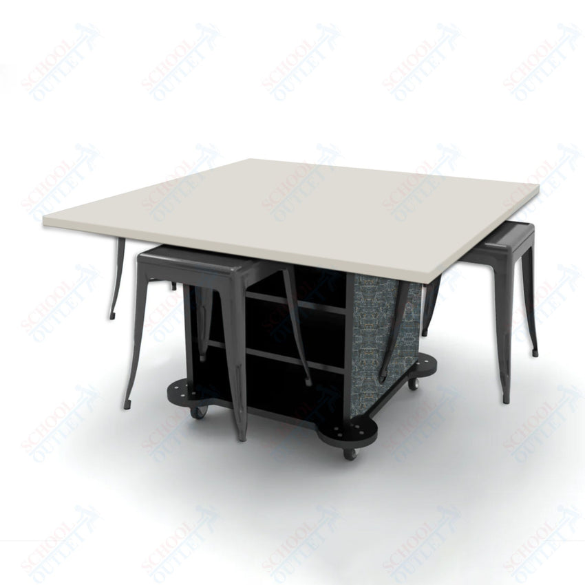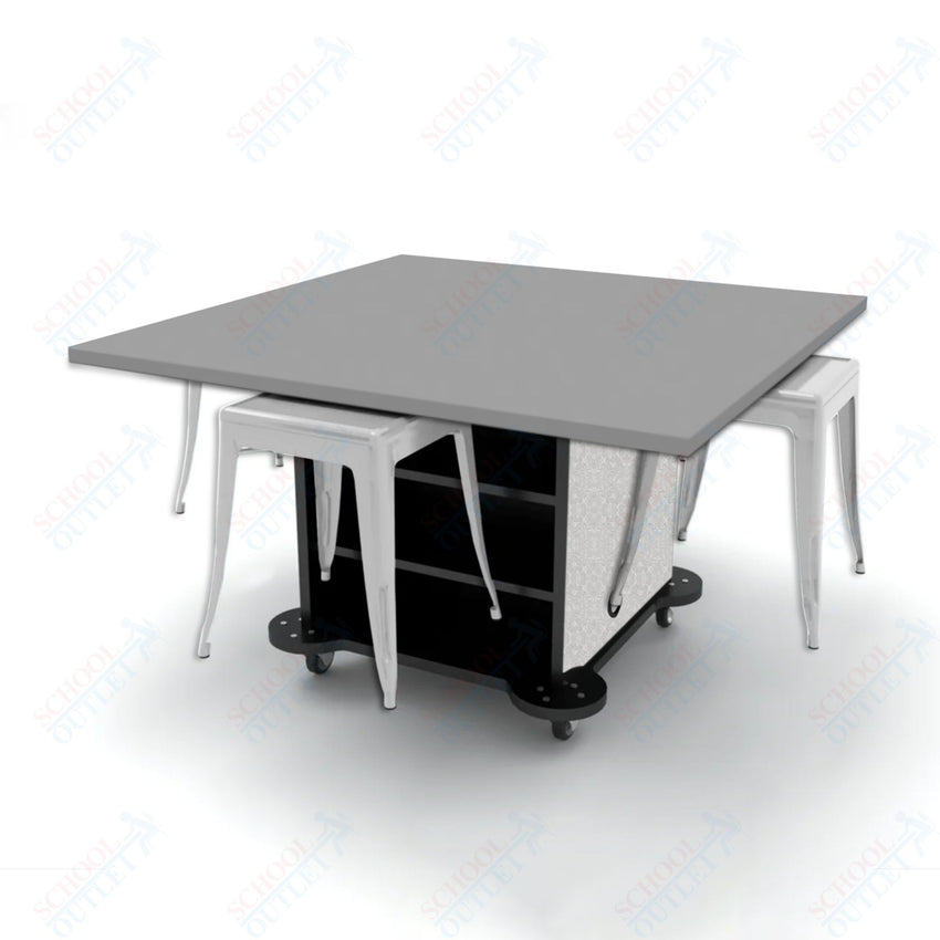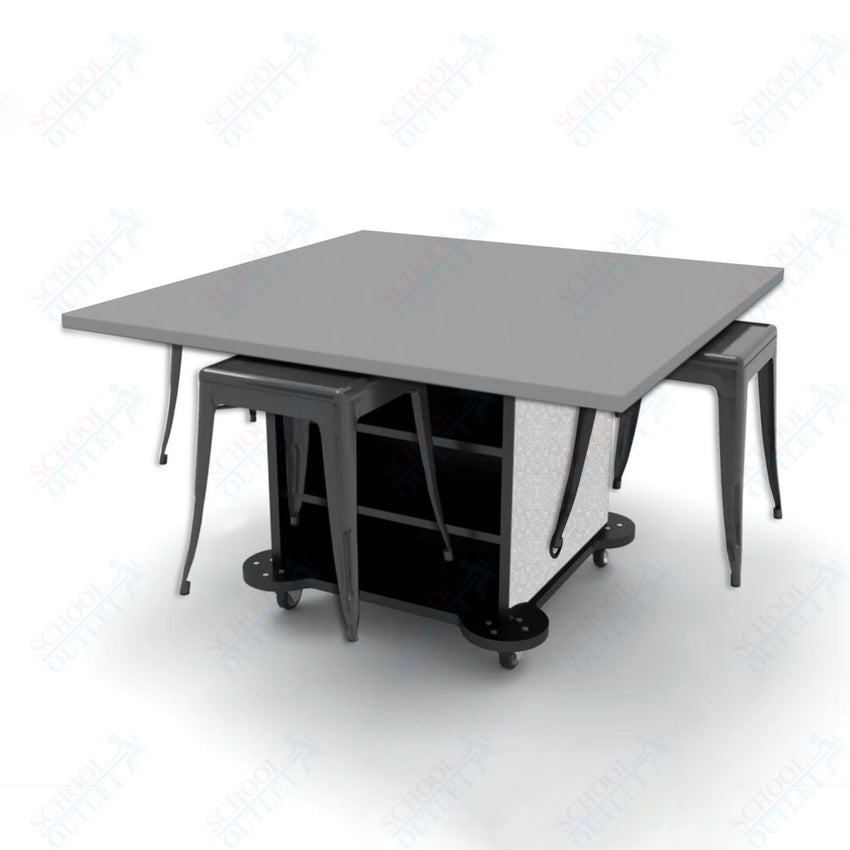 CEF Creation Cube Double-Sided Storage Table - 30"H, High-Pressure Laminate Base and Square Top - 4 Metal Stools Included