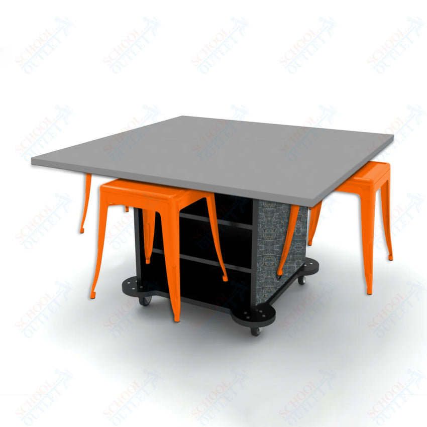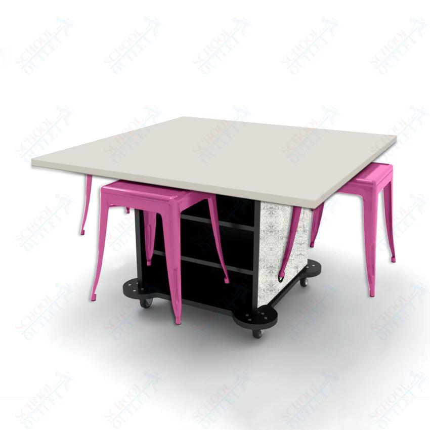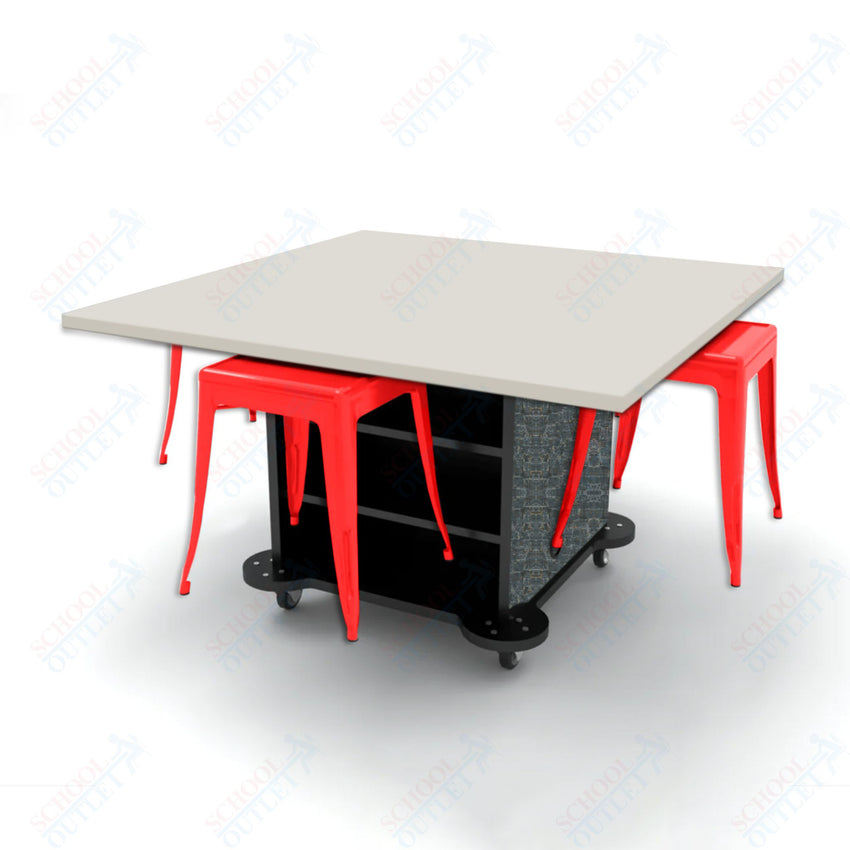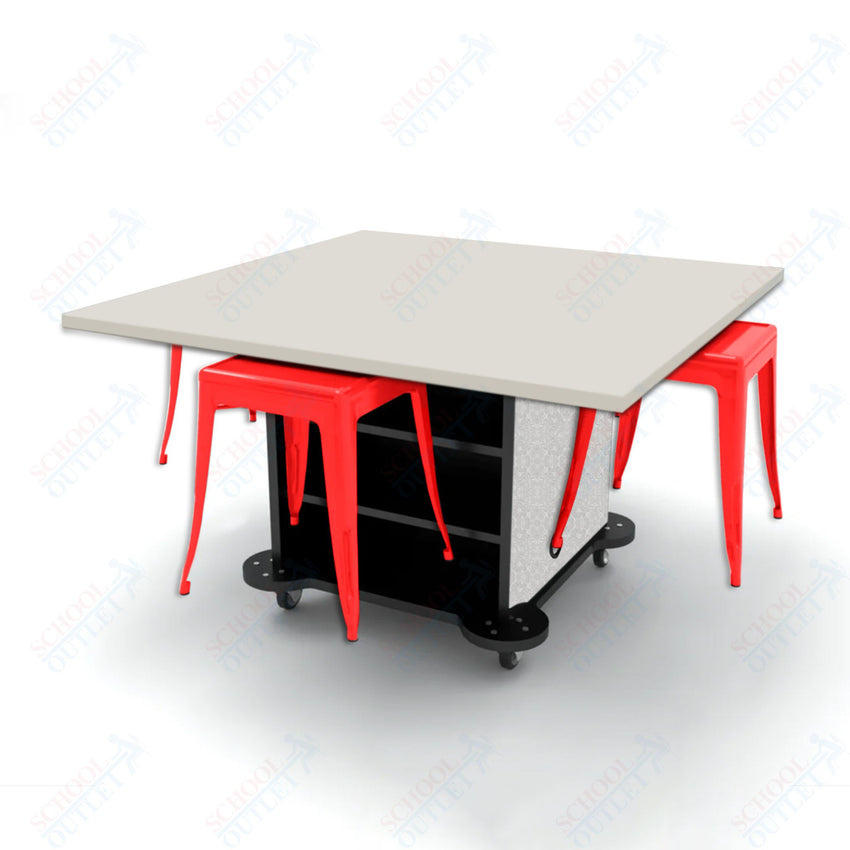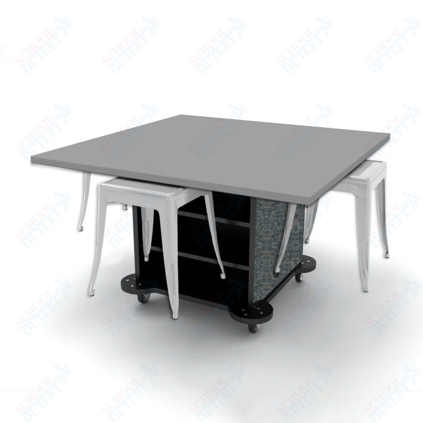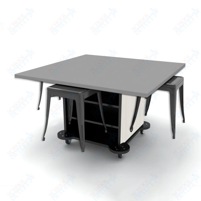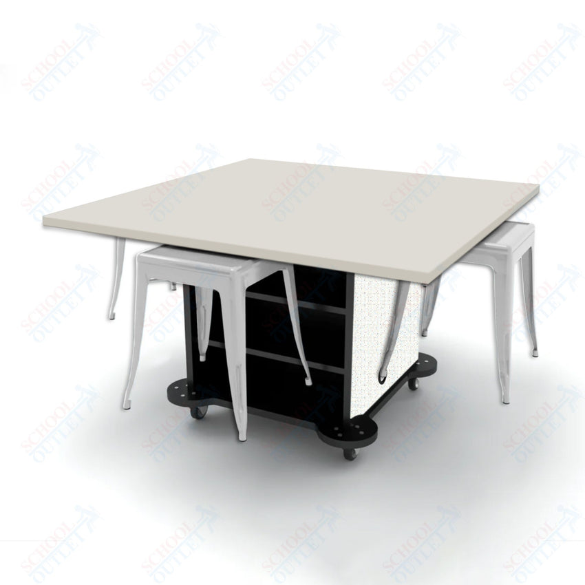 CEF Creation Cube Double-Sided Storage Table - 30"H, High-Pressure Laminate Base and Square Top - 4 Metal Stools Included
