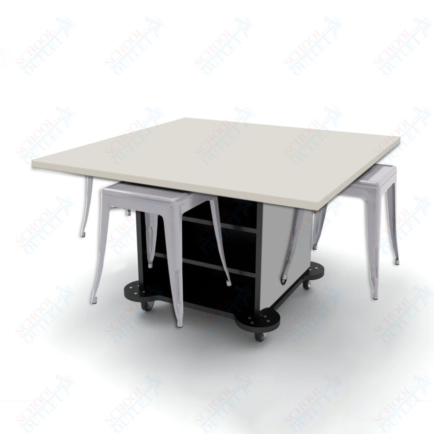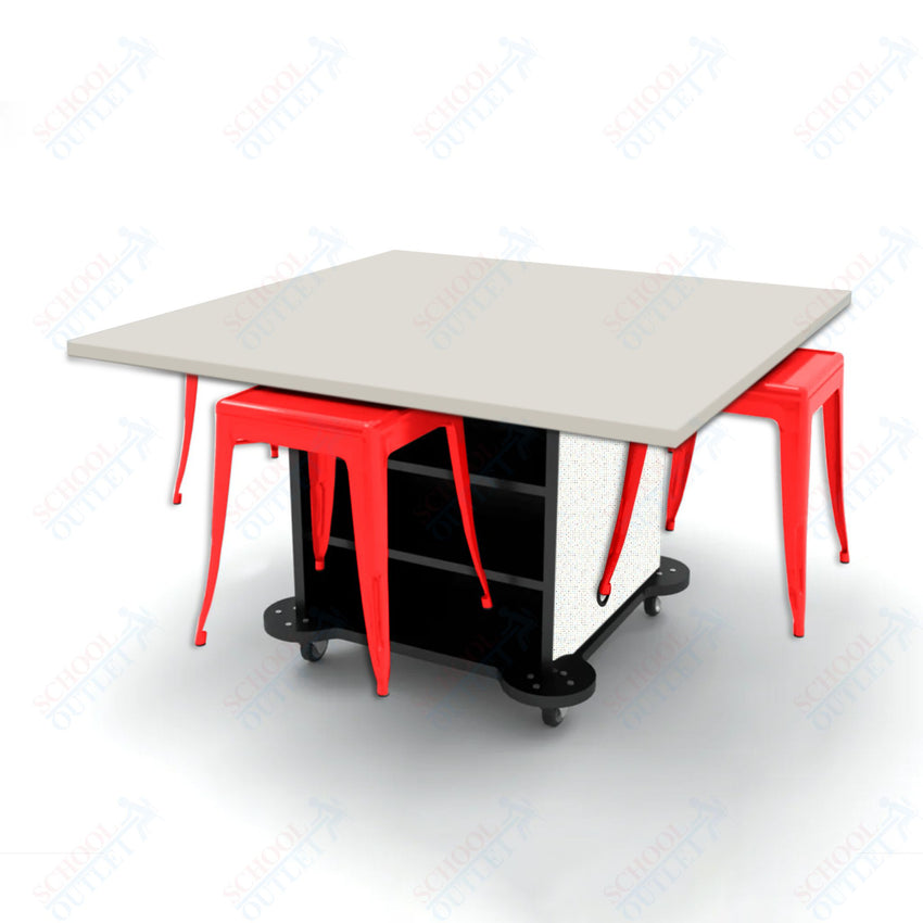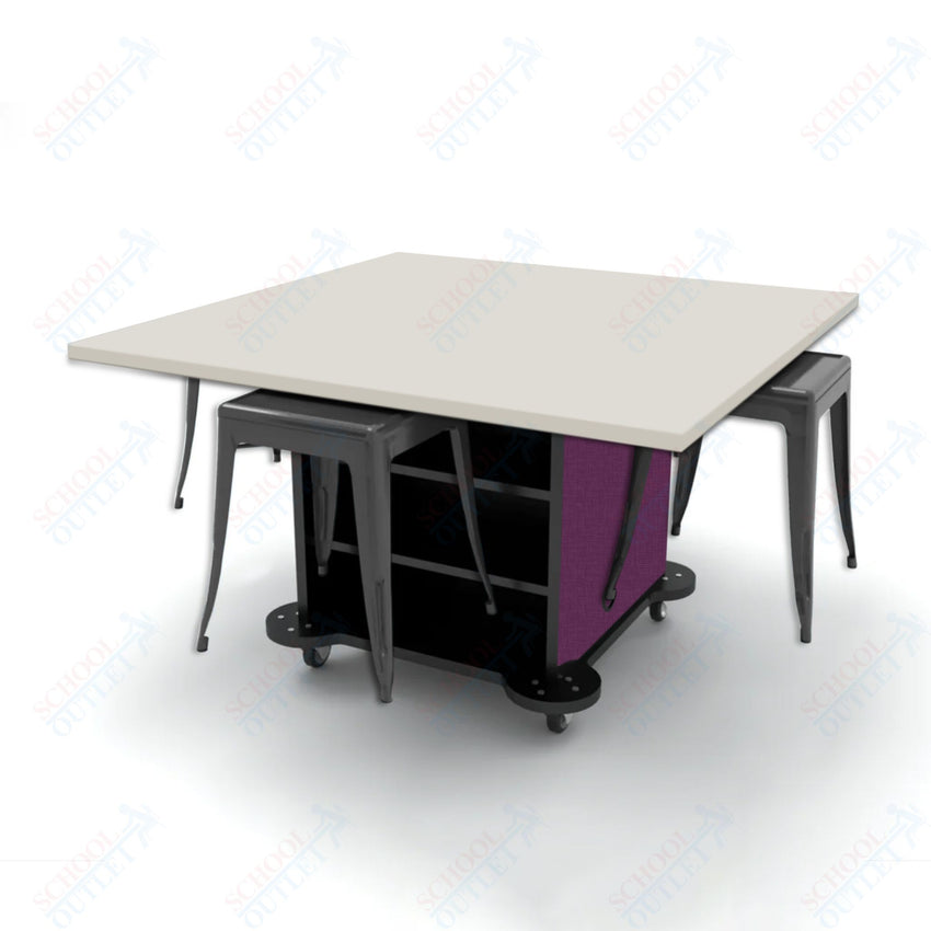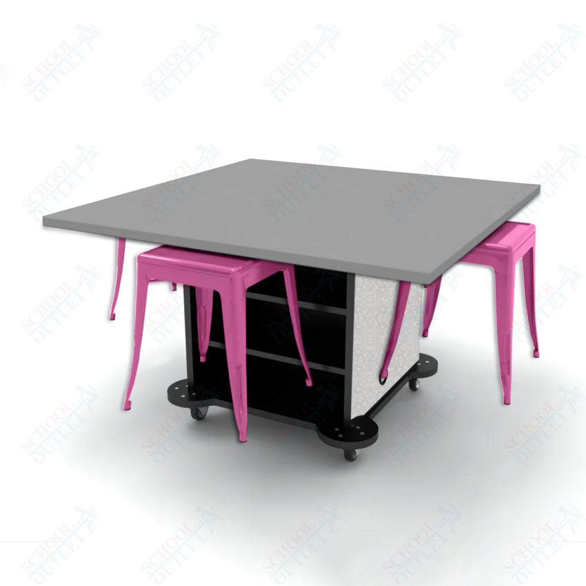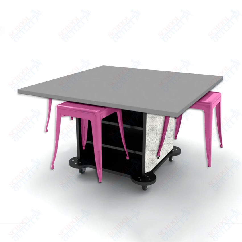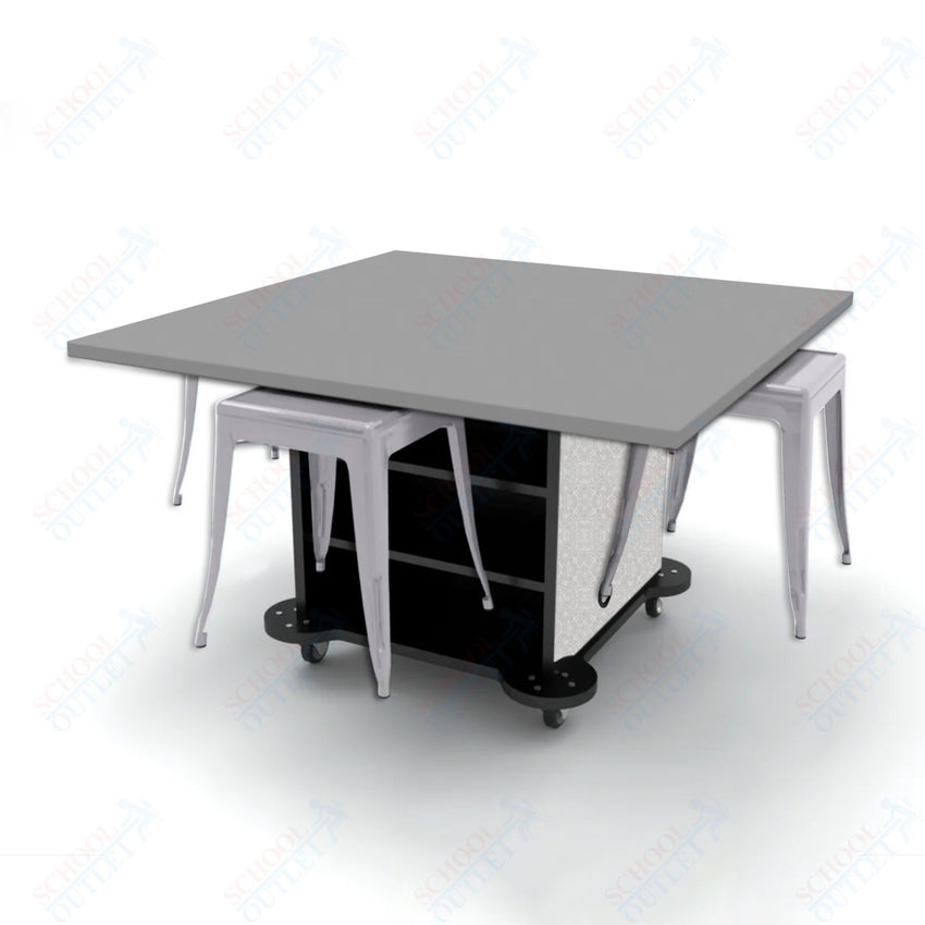 CEF Creation Cube Double-Sided Storage Table - 30"H, High-Pressure Laminate Base and Square Top - 4 Metal Stools Included