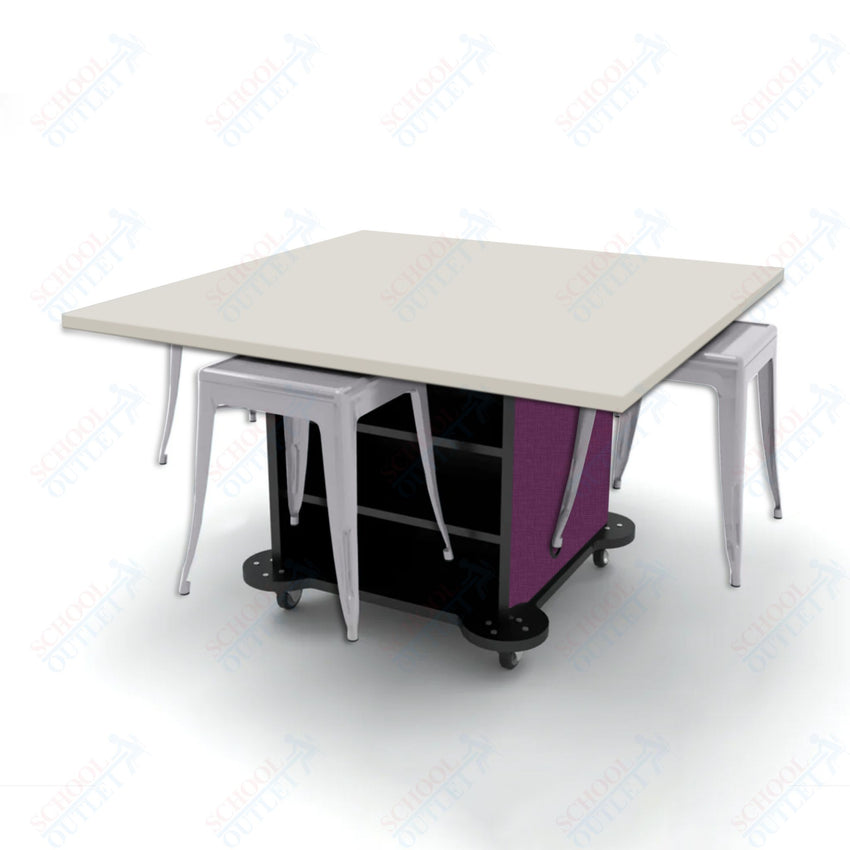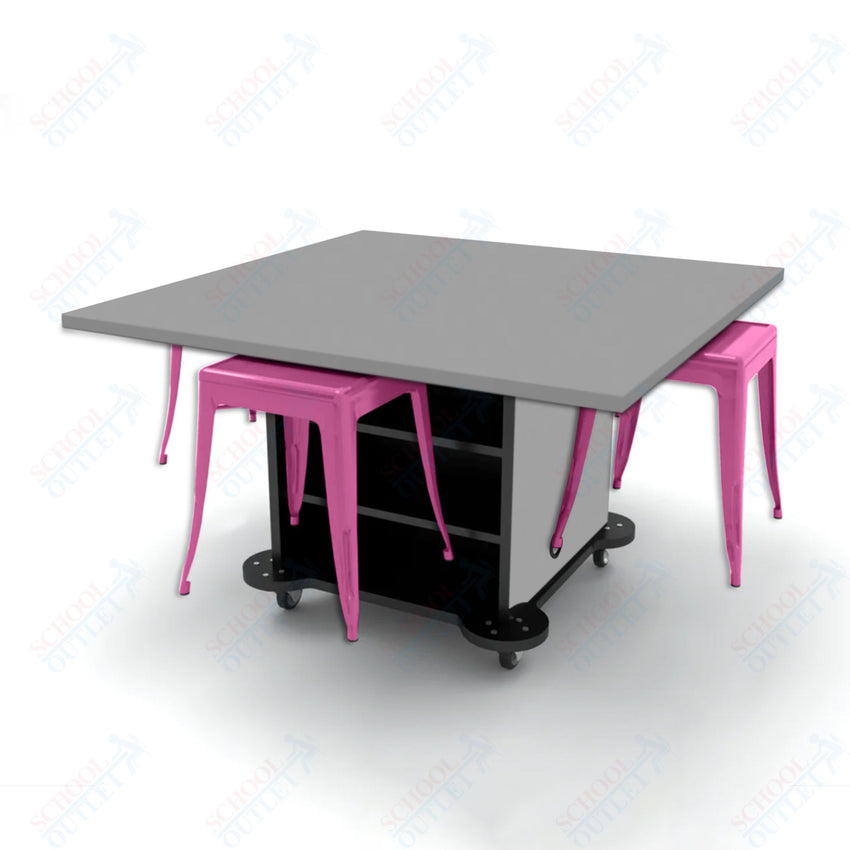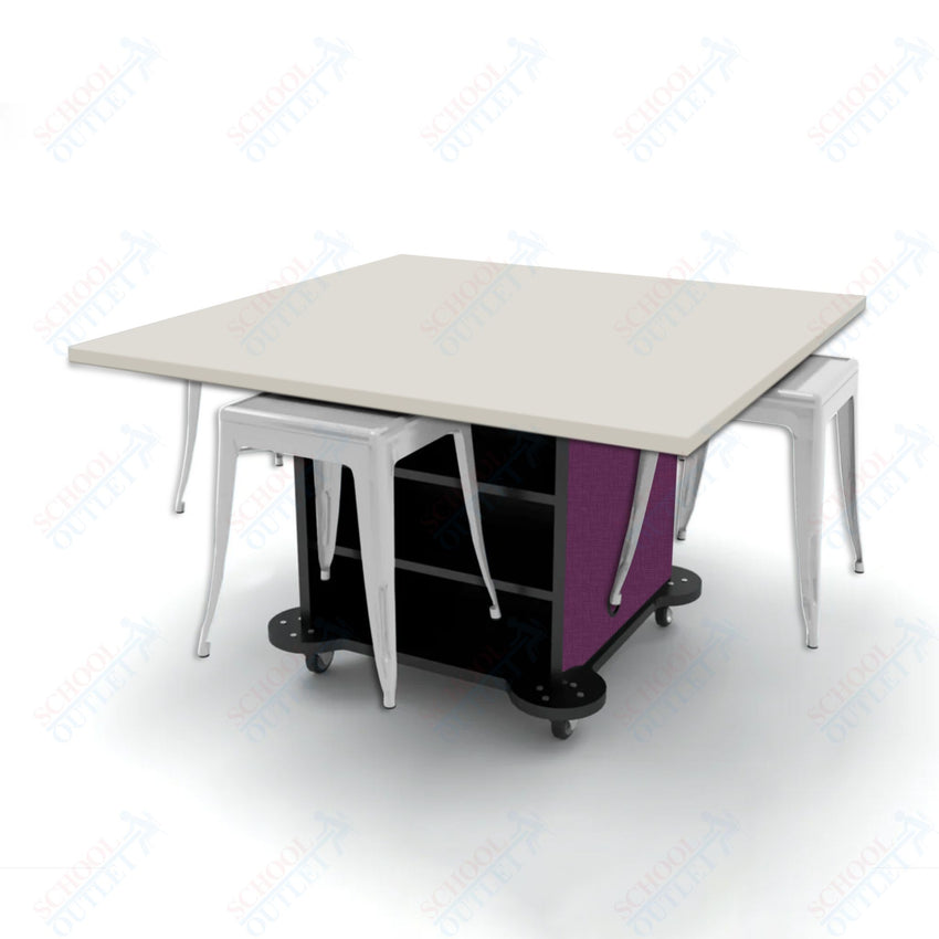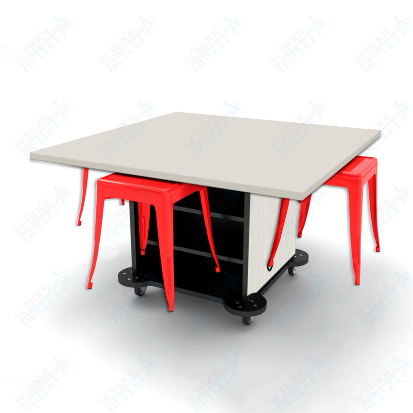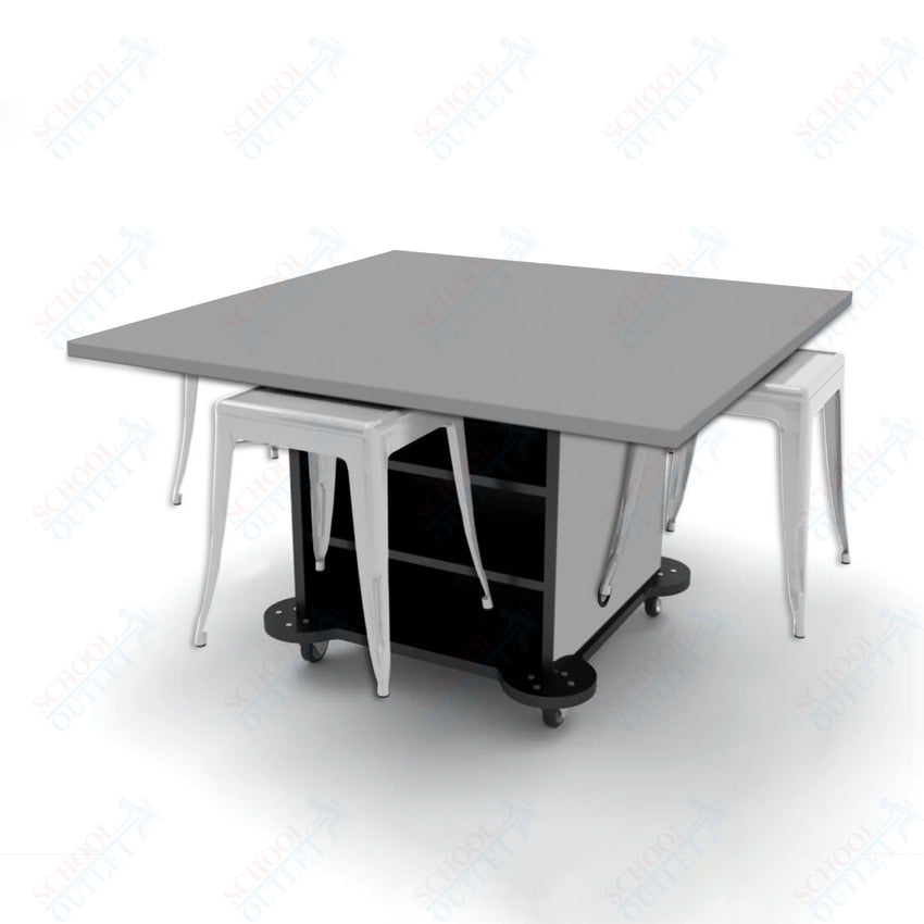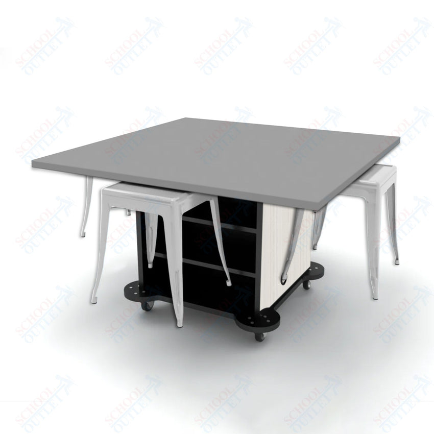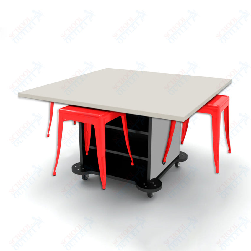 CEF Creation Cube Double-Sided Storage Table - 30"H, High-Pressure Laminate Base and Square Top - 4 Metal Stools Included