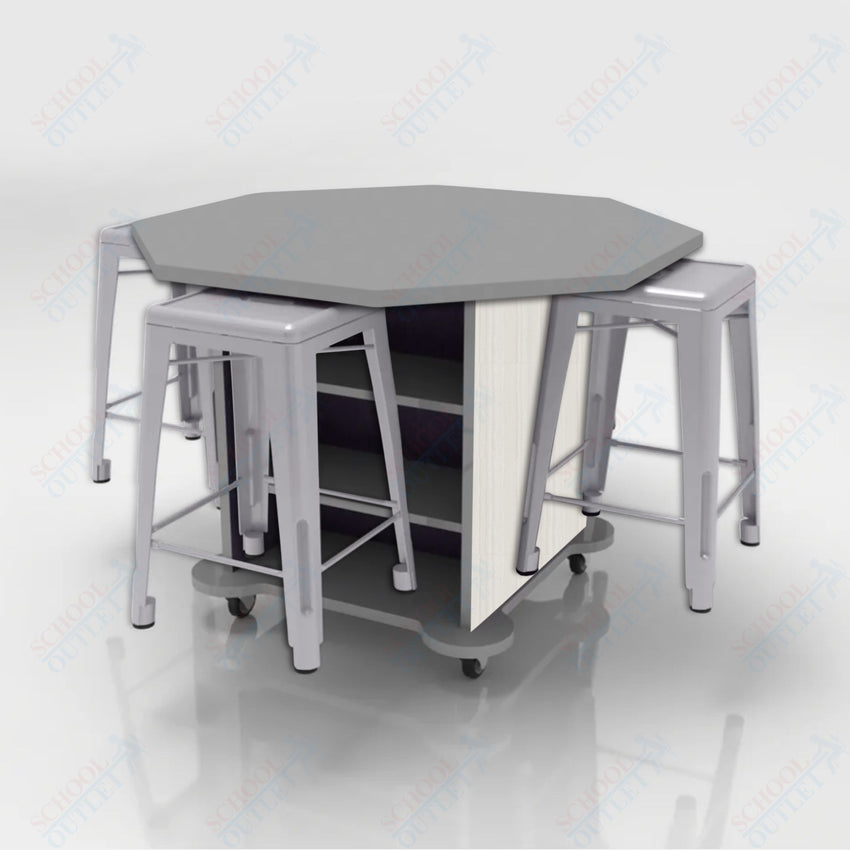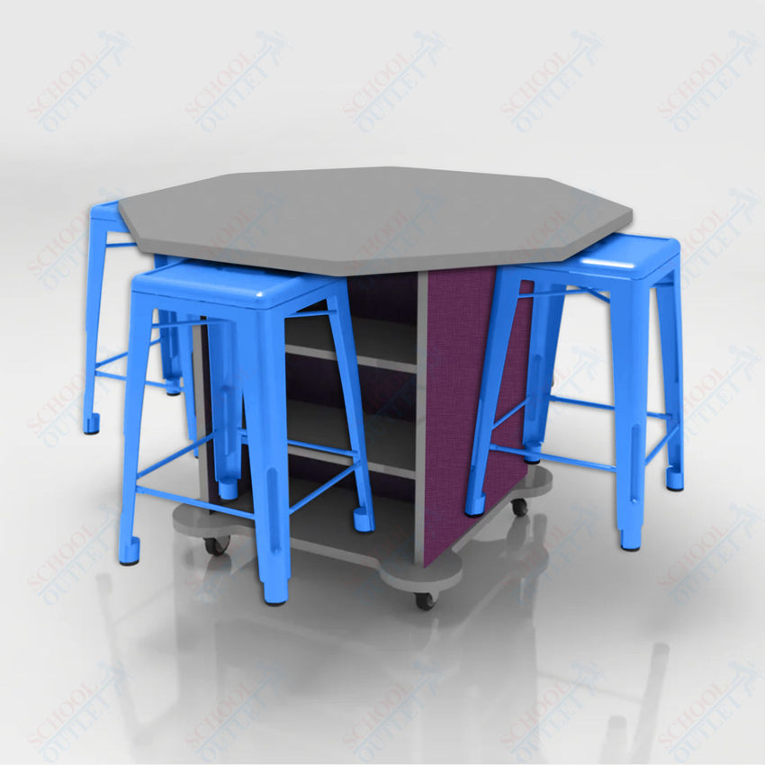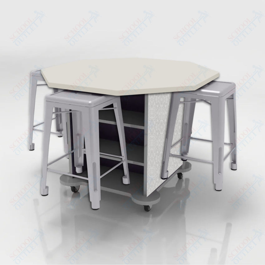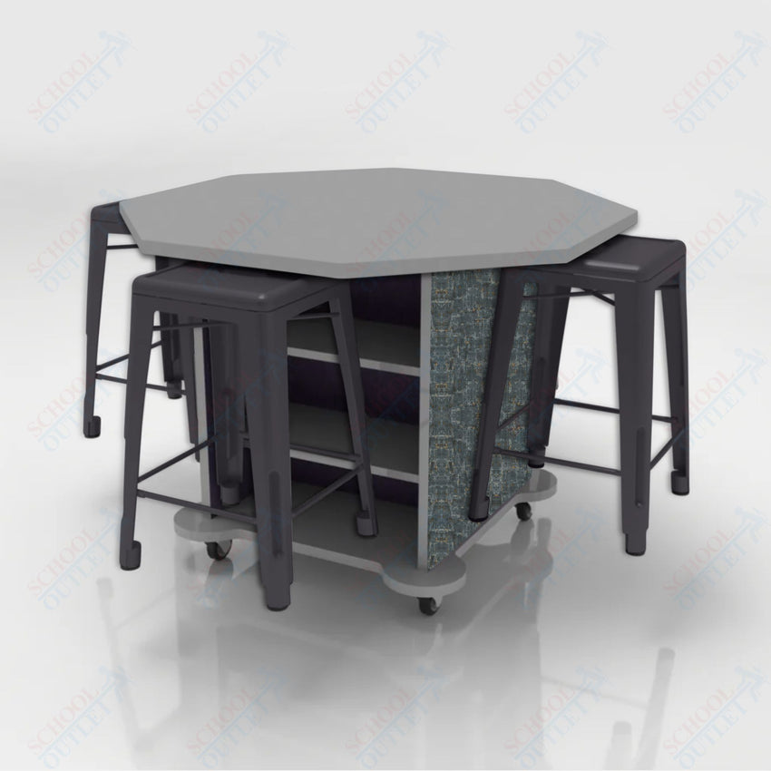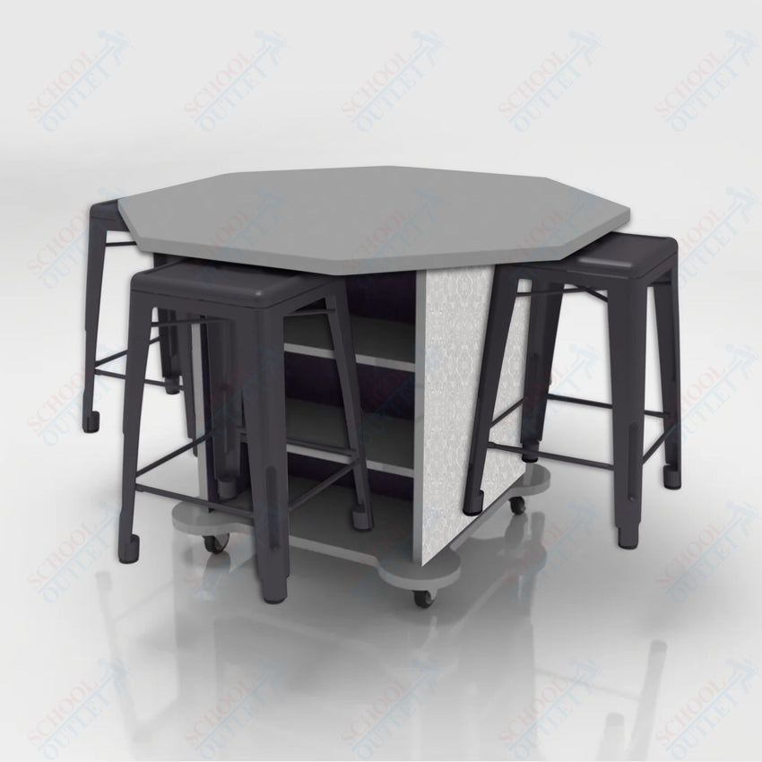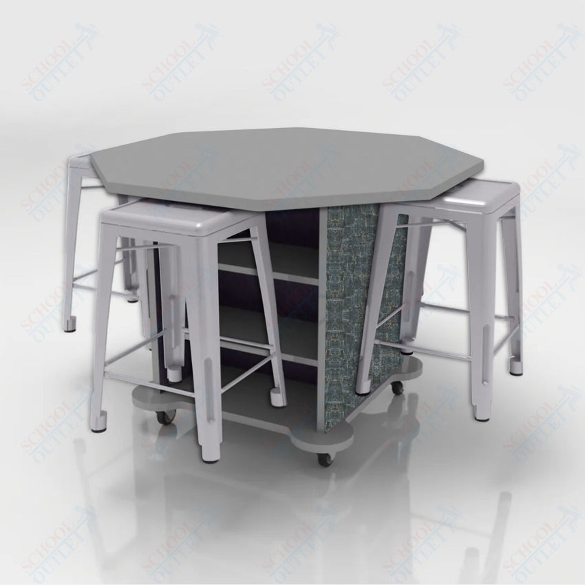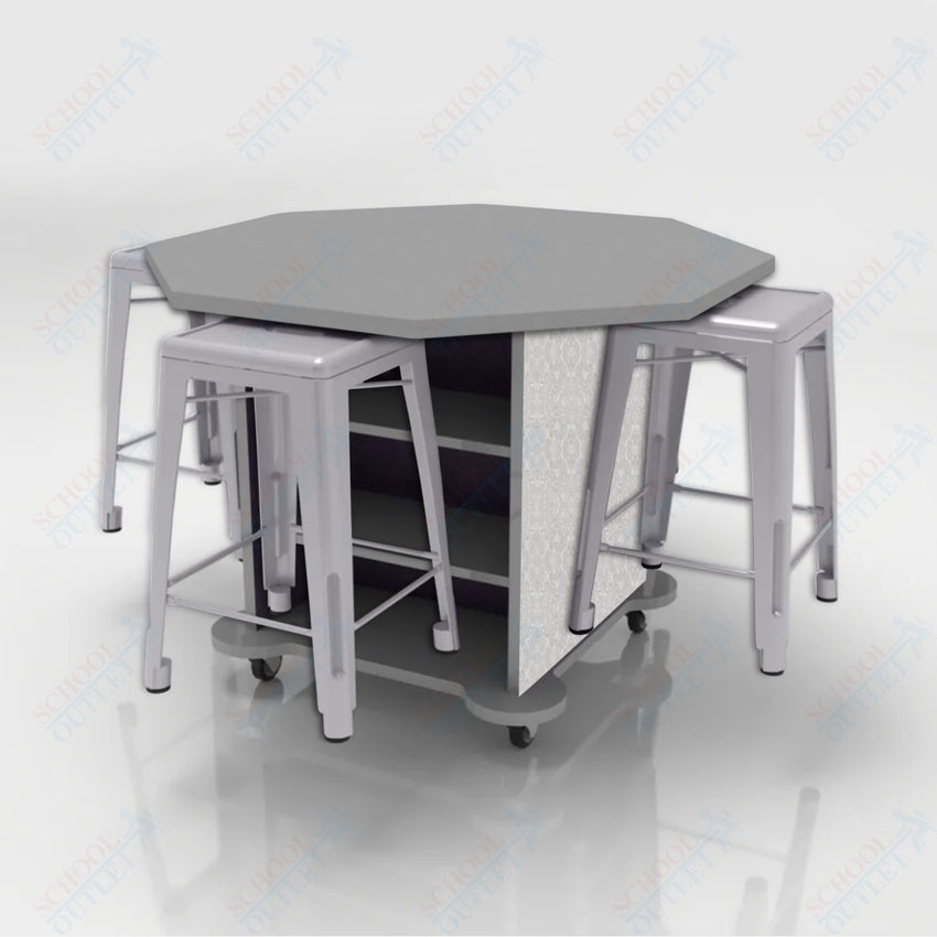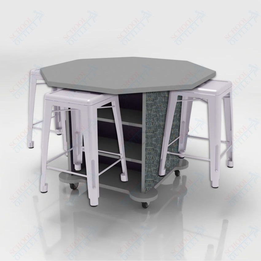 CEF Creation Cube Double-Sided Storage Table - 34"H, High-Pressure Laminate Base and Octagon Top - 4 Metal Stools Included