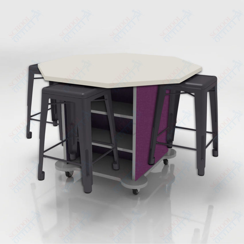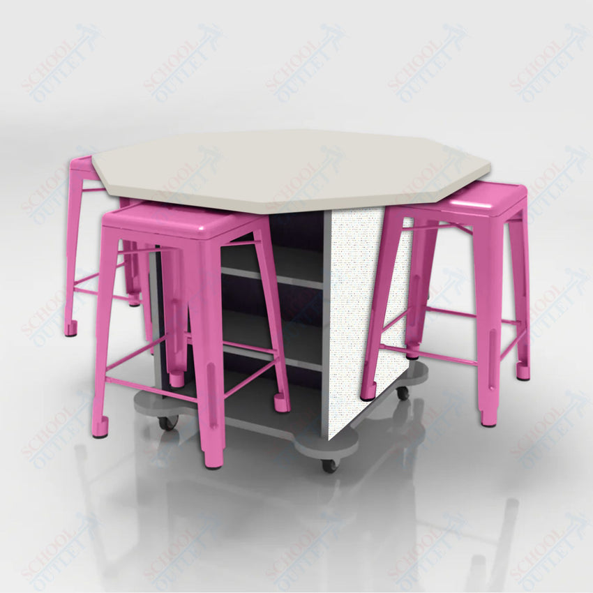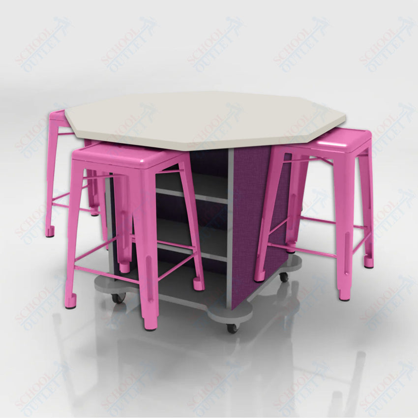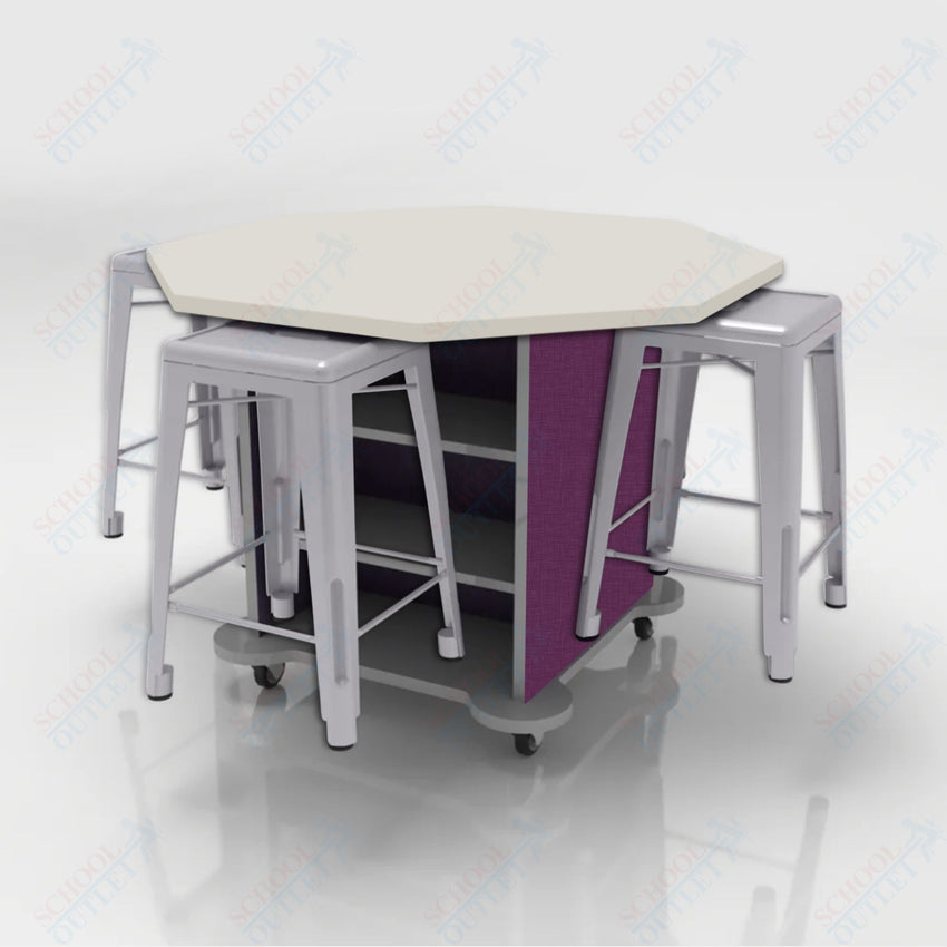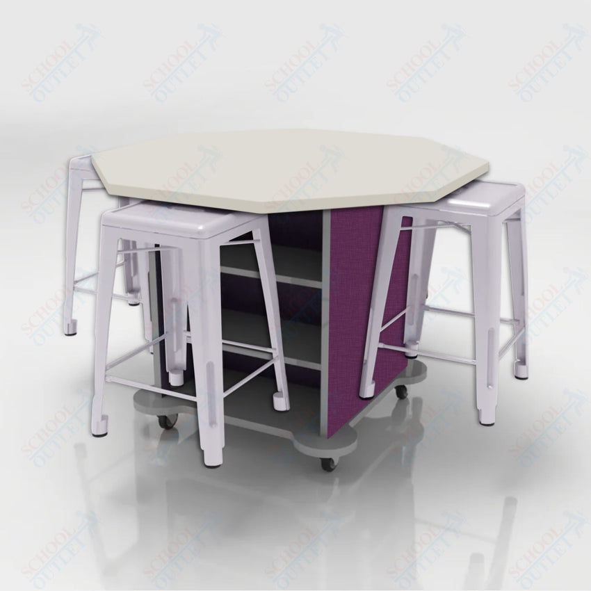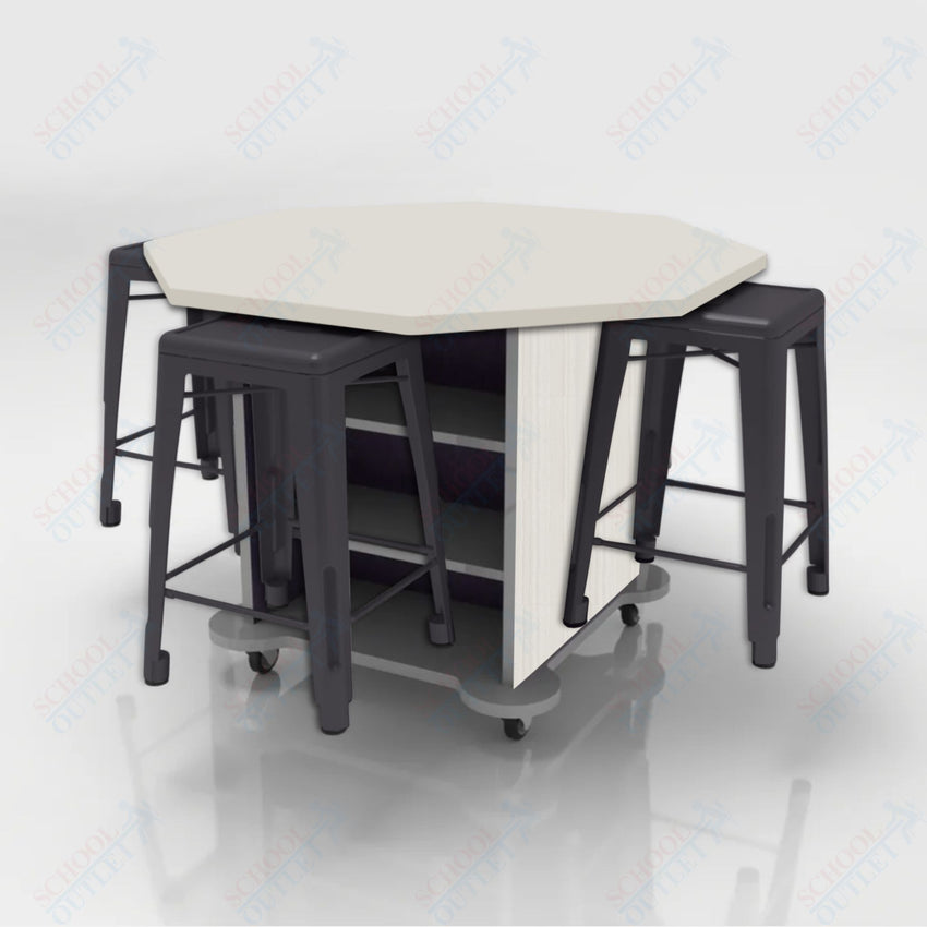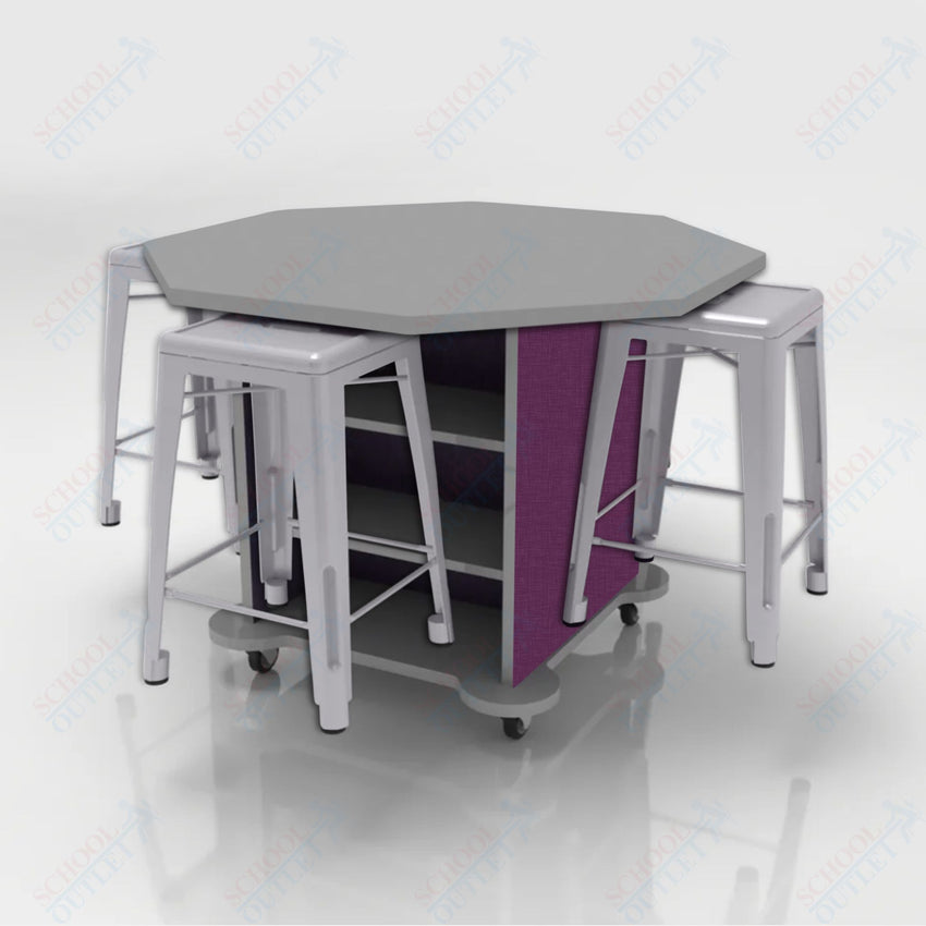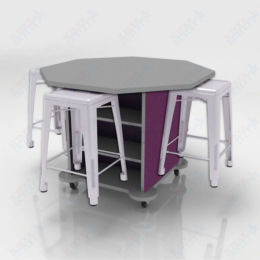 CEF Creation Cube Double-Sided Storage Table - 34"H, High-Pressure Laminate Base and Octagon Top - 4 Metal Stools Included