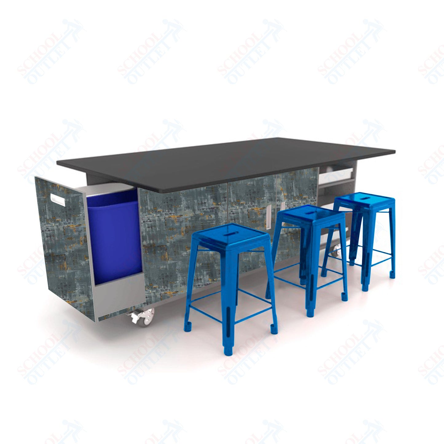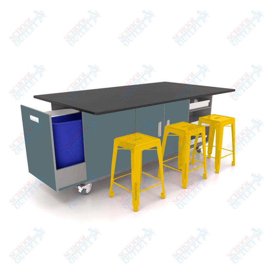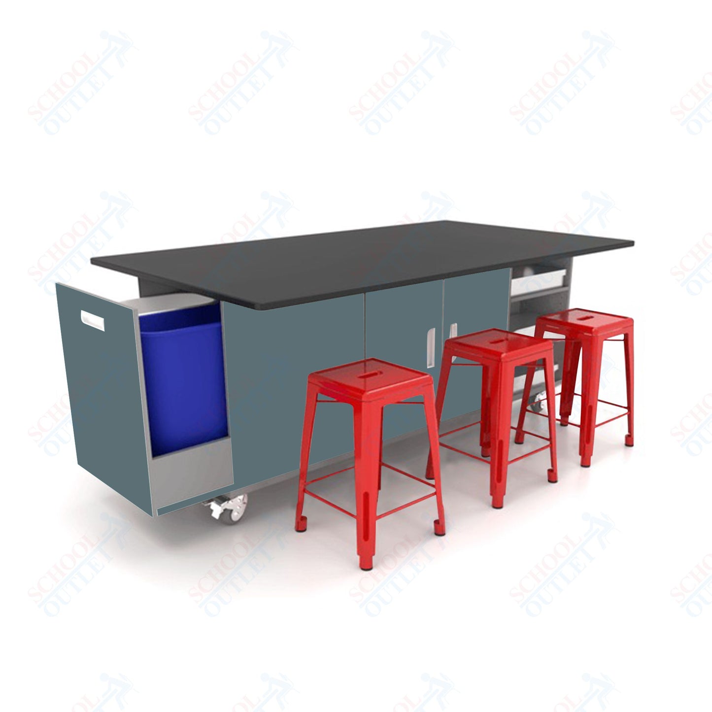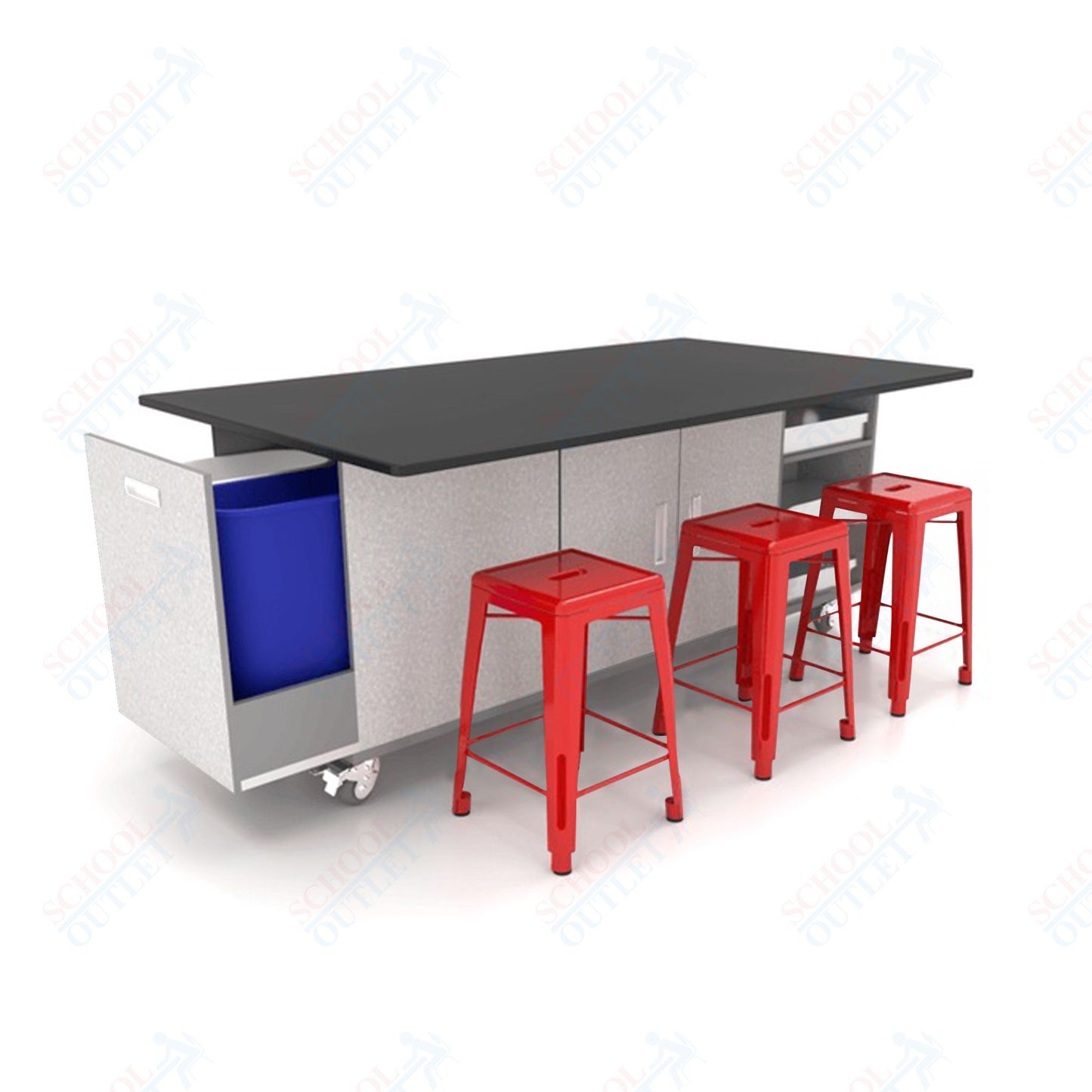 CEF ED Original Table 36"H Chemical Resistant Top, Laminate Base with 6 Stools, Storage Bins, Trash Bins, and Electrical Outlets Included.