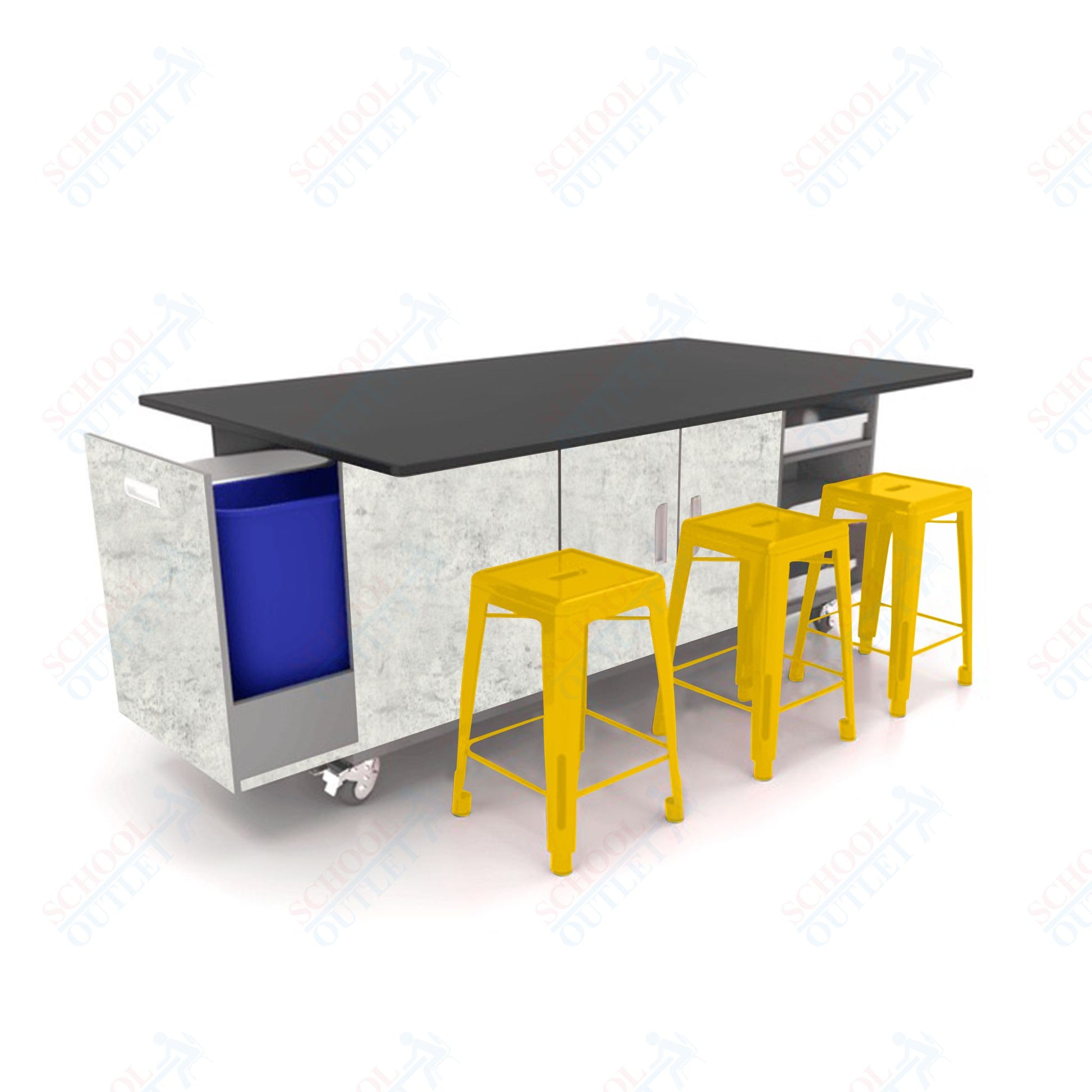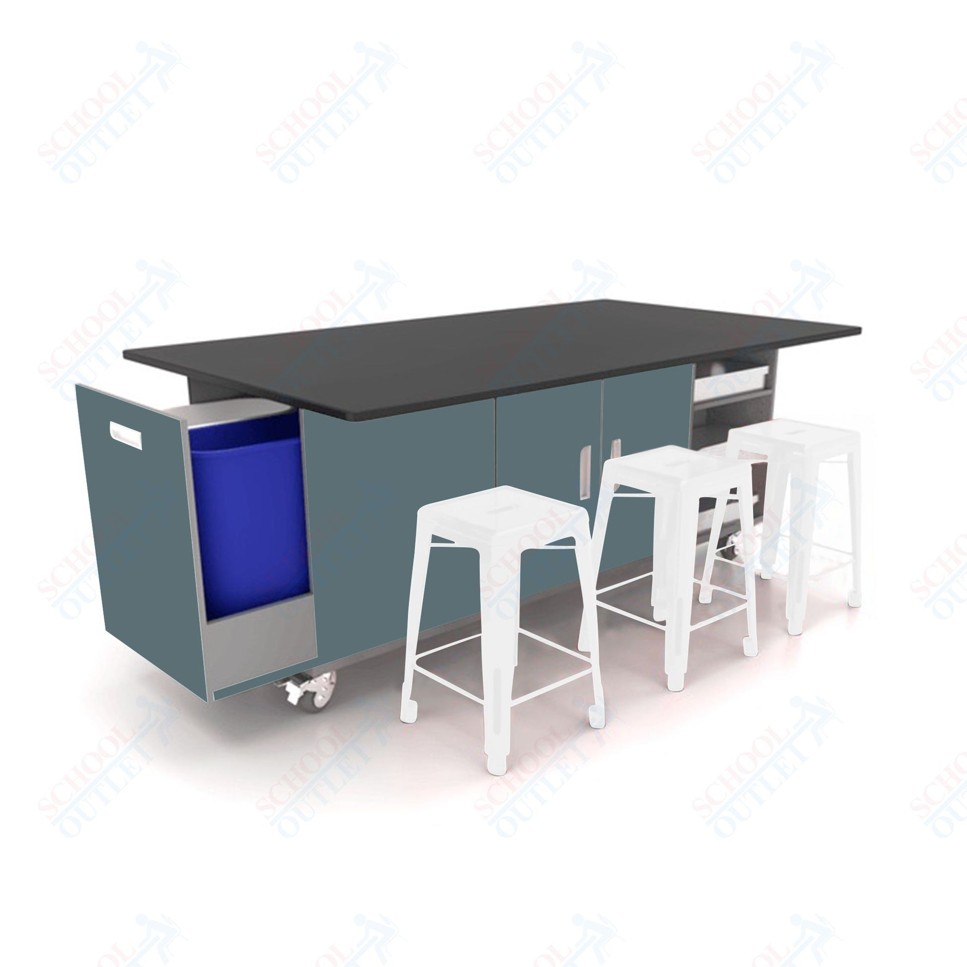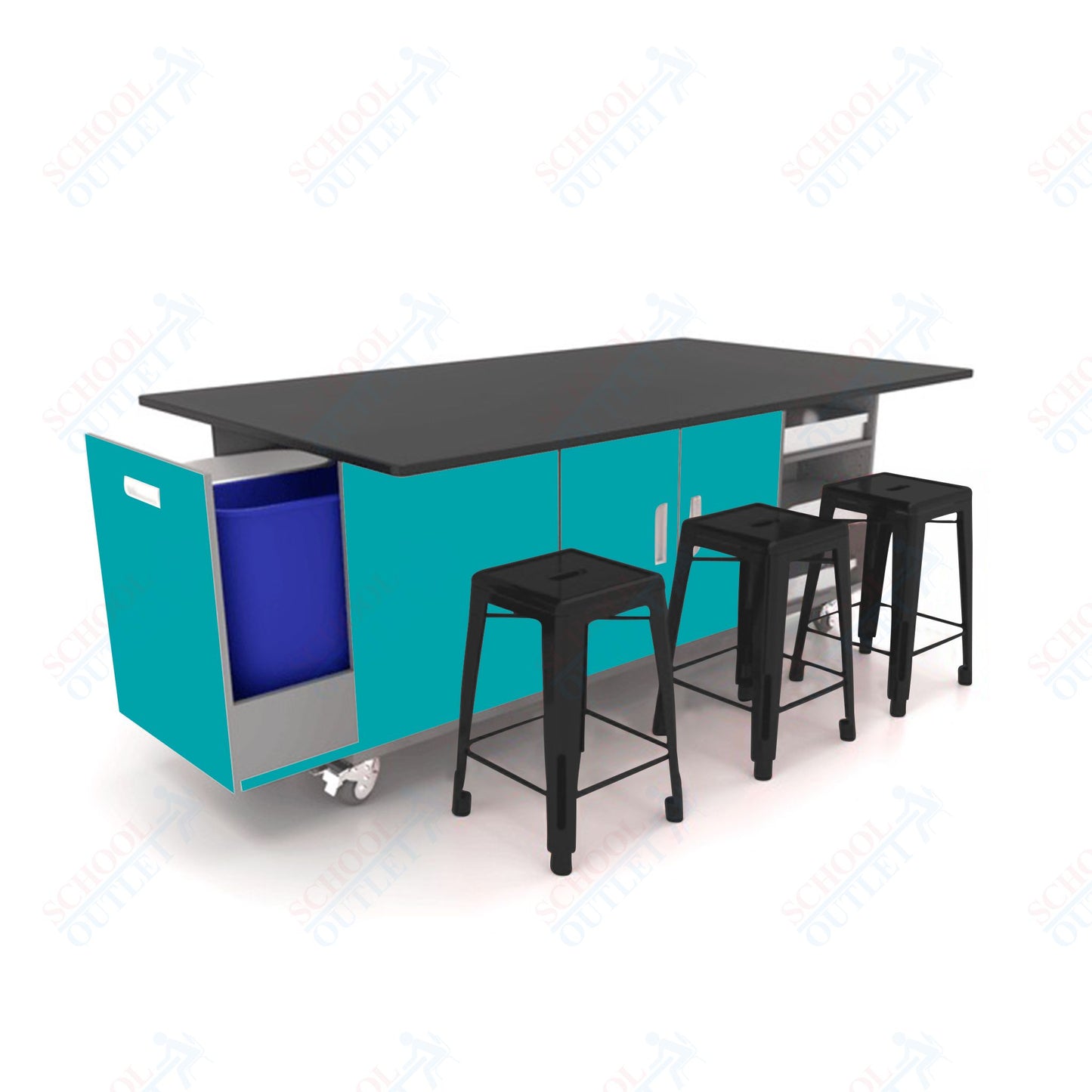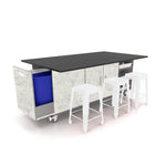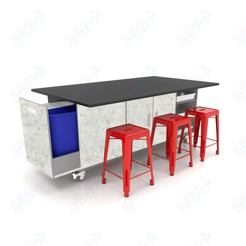 CEF ED Original Table 36"H Chemical Resistant Top, Laminate Base with 6 Stools, Storage Bins, Trash Bins, and Electrical Outlets Included.