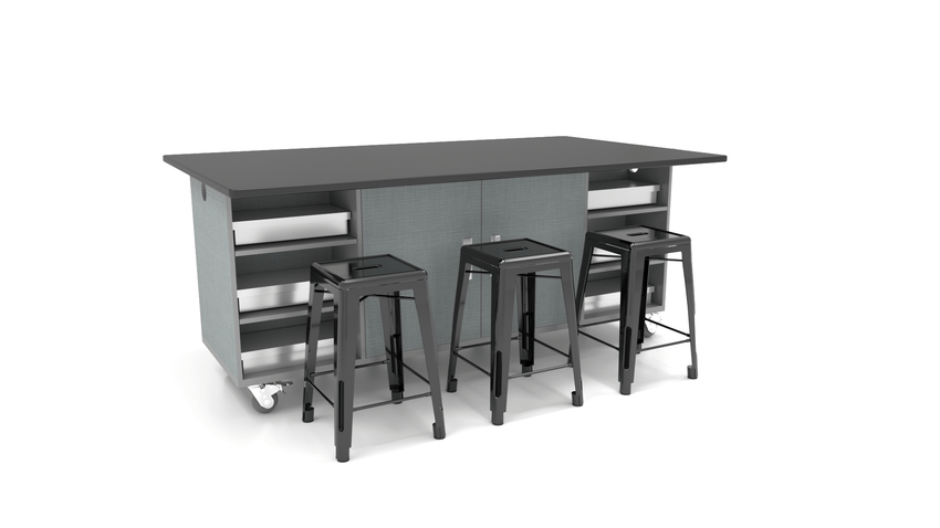 The CEF ED Table Series design won an award at EDspaces, and it quickly became sought after by school districts across America for designs in classrooms, maker spaces, STEM, art, woodworking, robotics, and more. For schools and teachers interested in project-based learning, the Ed Table is a great choice for engaging learners. ED Original Table includes storage bins, trash bins, electrical outlets, and six metal stools that magnetically attach to the table for easy storage, transport, and cleaning!