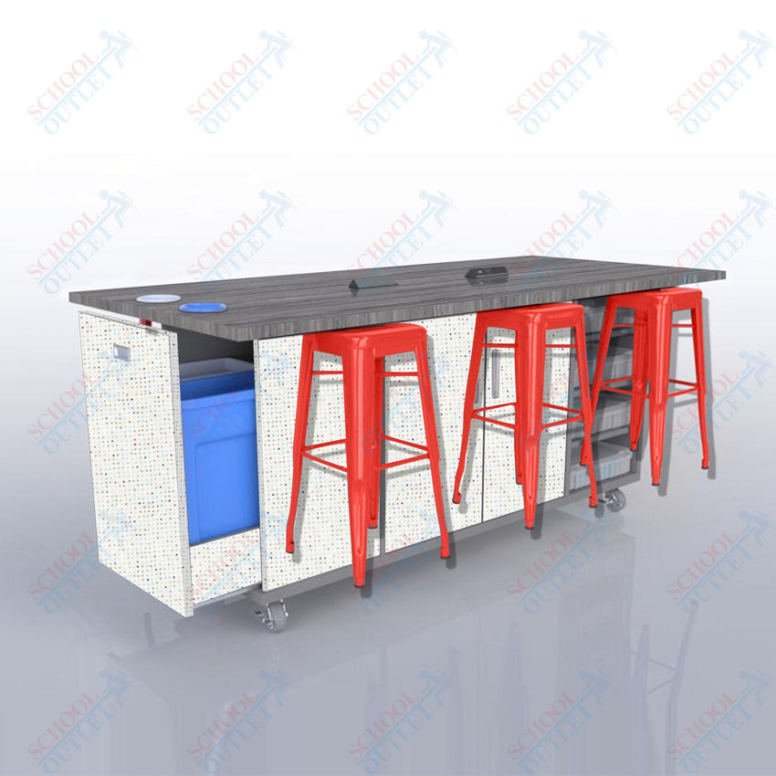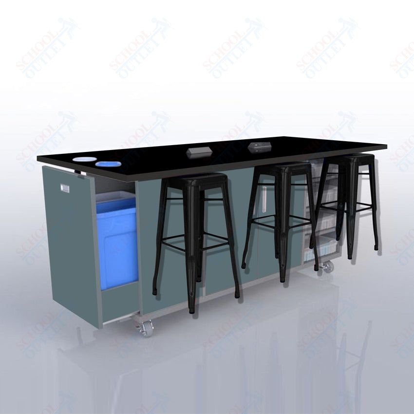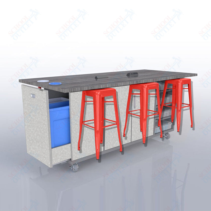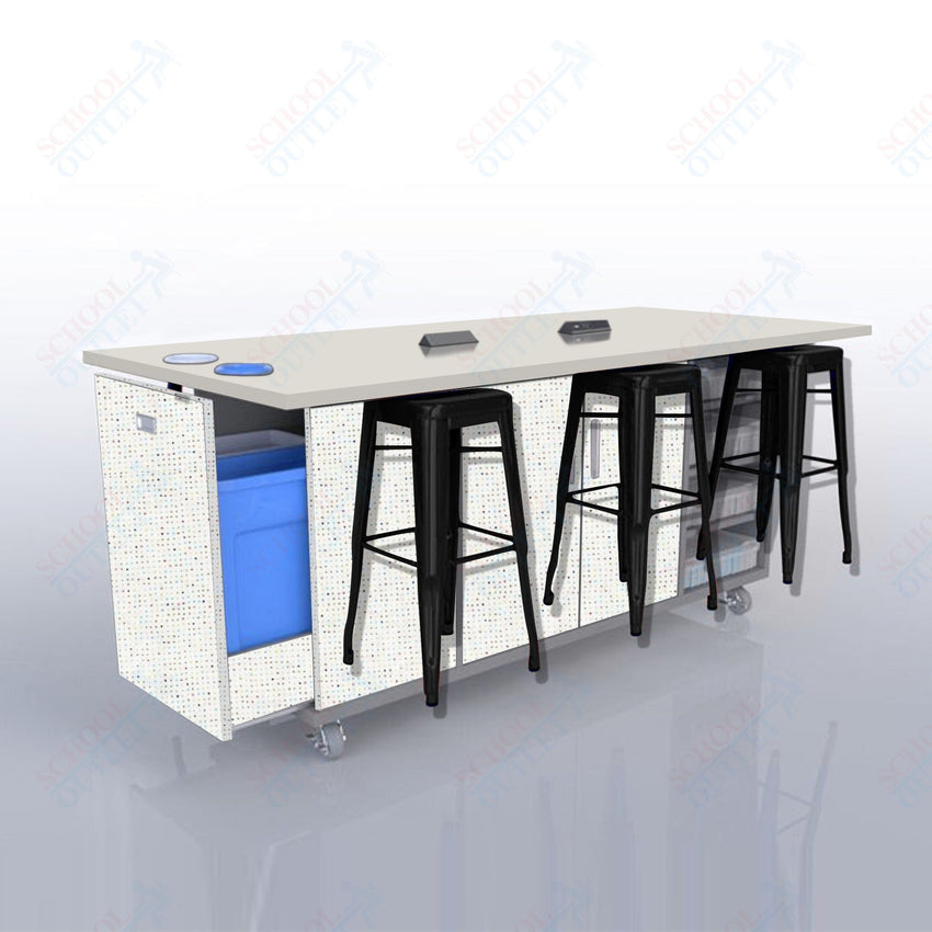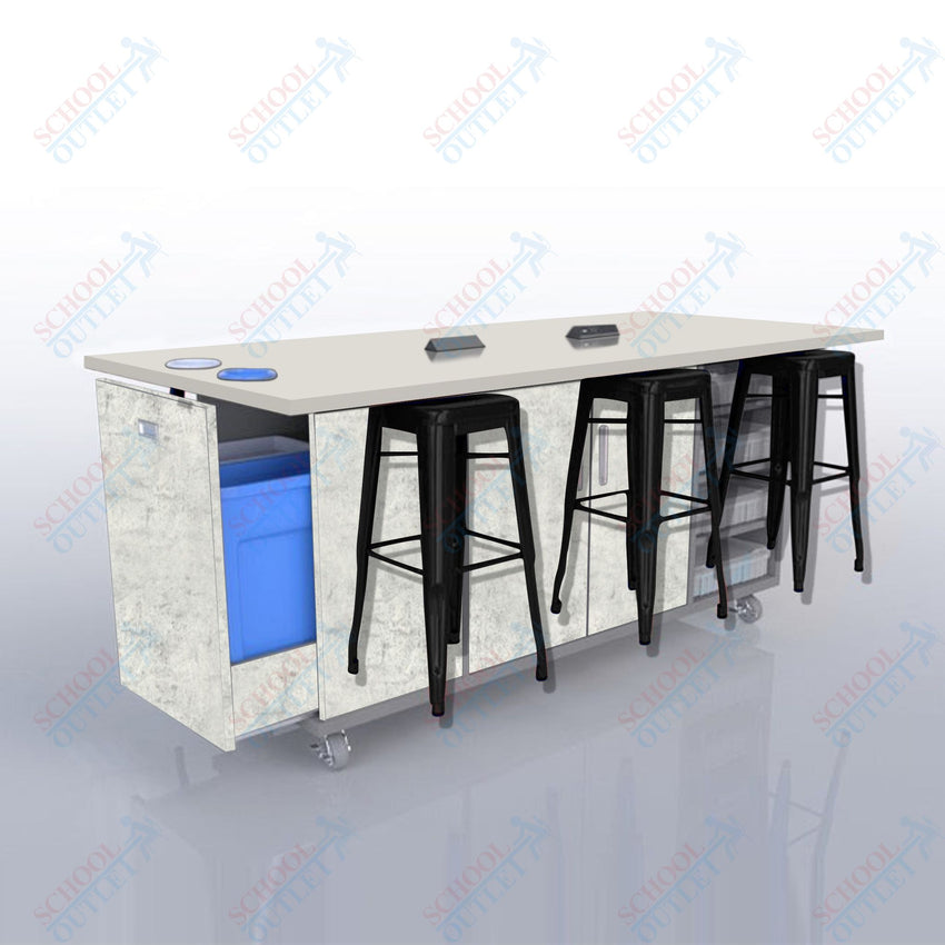 CEF ED Original Table 42"H High Pressure Laminate Top, Laminate Base with 6 Stools, Storage Bins, Trash Bins, and Electrical Outlets Included.