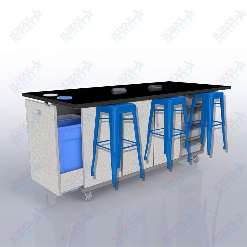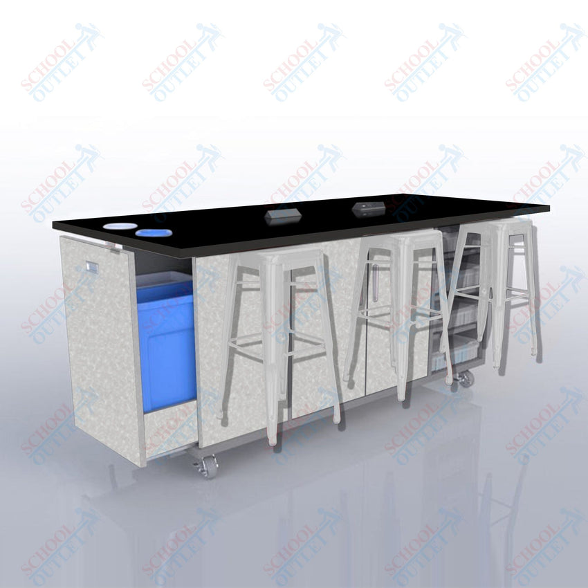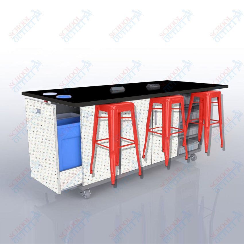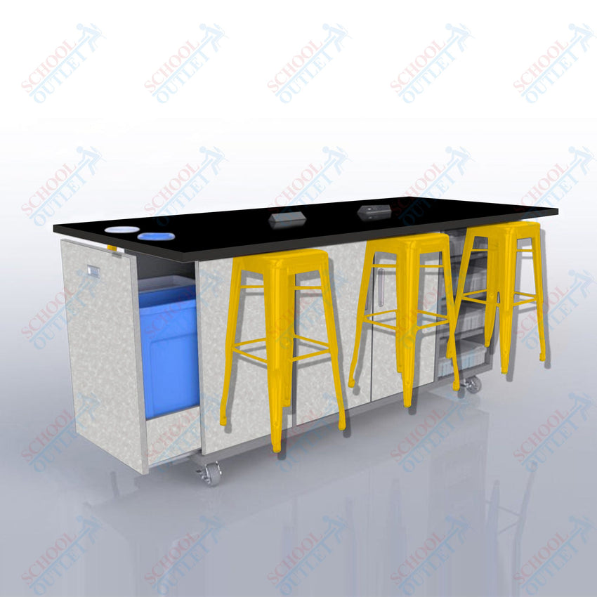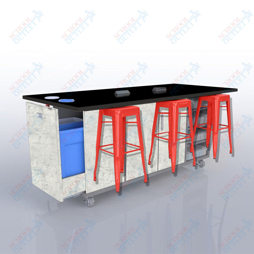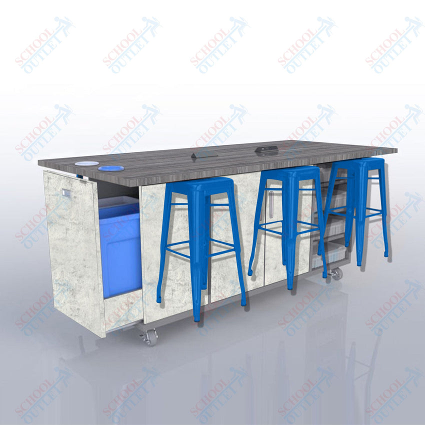 CEF ED Original Table 42"H High Pressure Laminate Top, Laminate Base with 6 Stools, Storage Bins, Trash Bins, and Electrical Outlets Included.