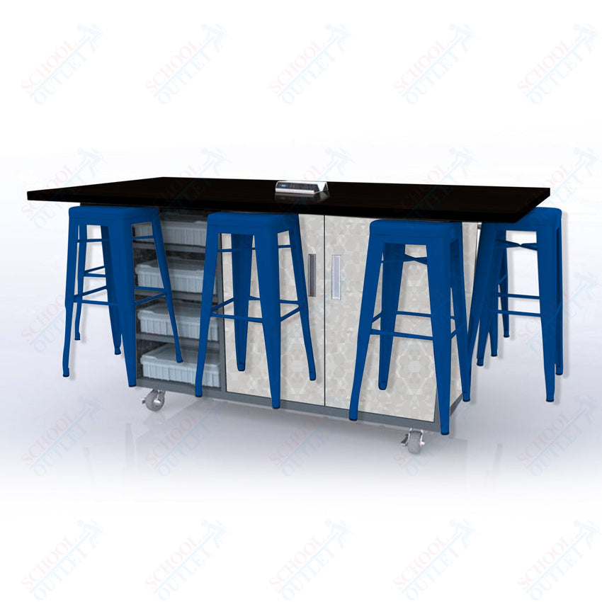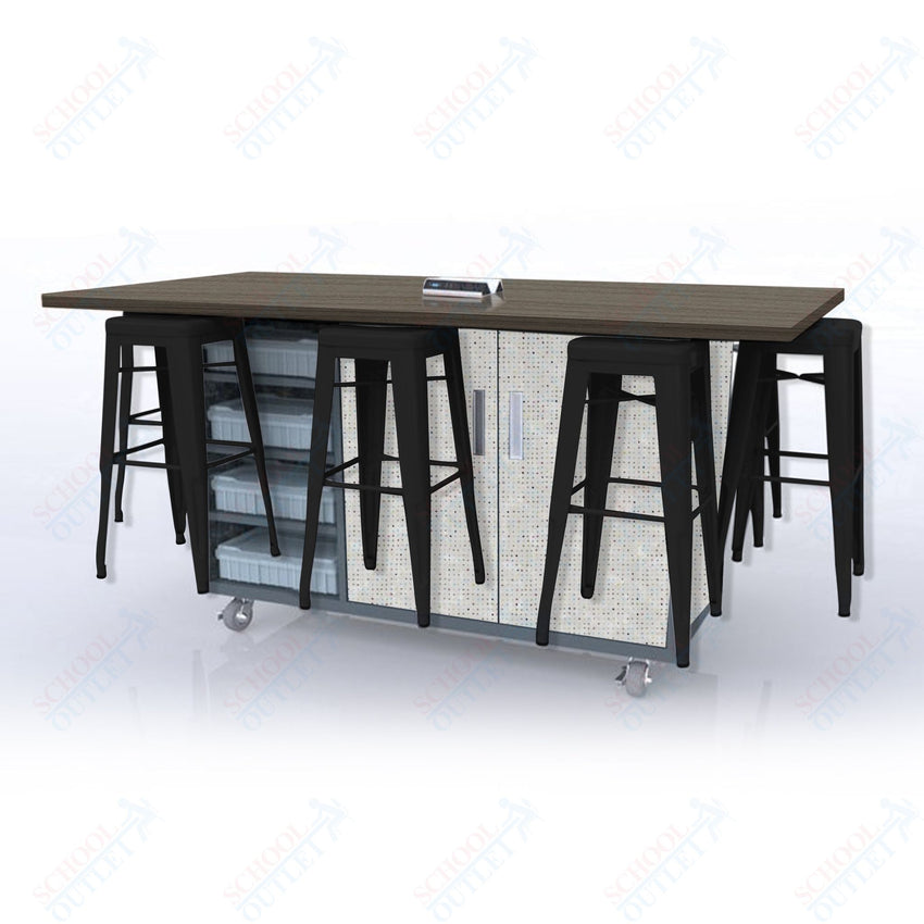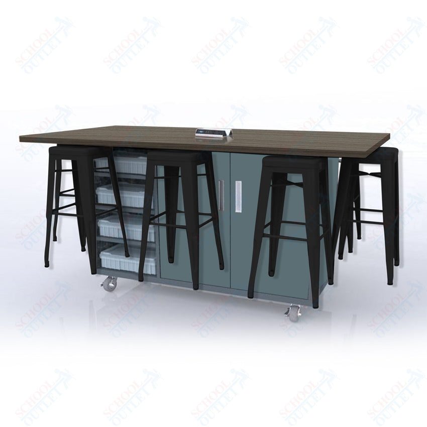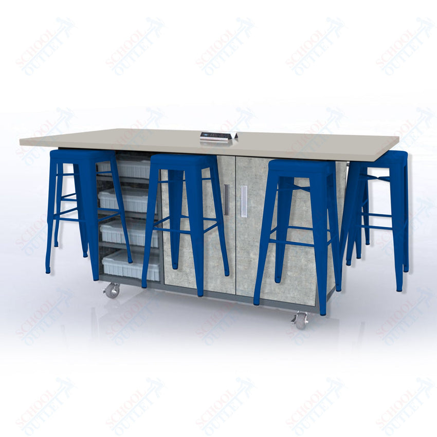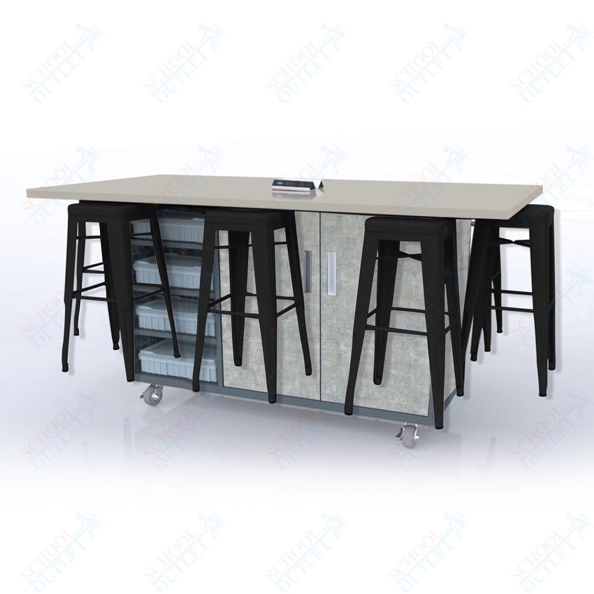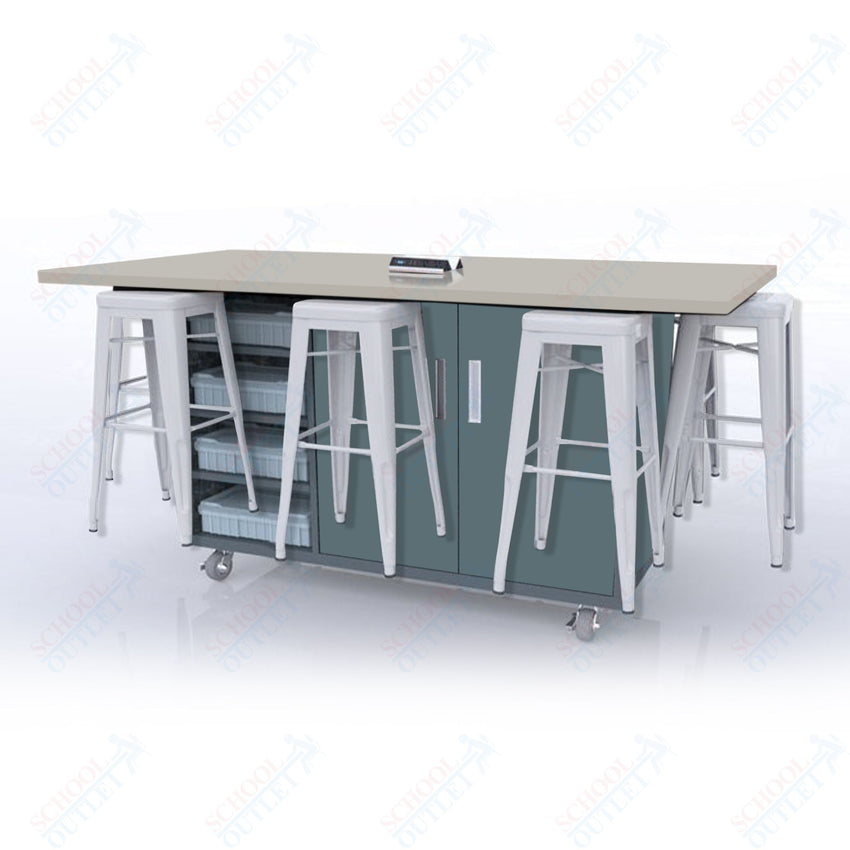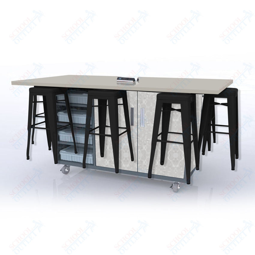 CEF ED8 Table 42"H High Pressure Laminate Top, Laminate Base with 8 Stools, Storage bins, and Electrical Outlets Included.