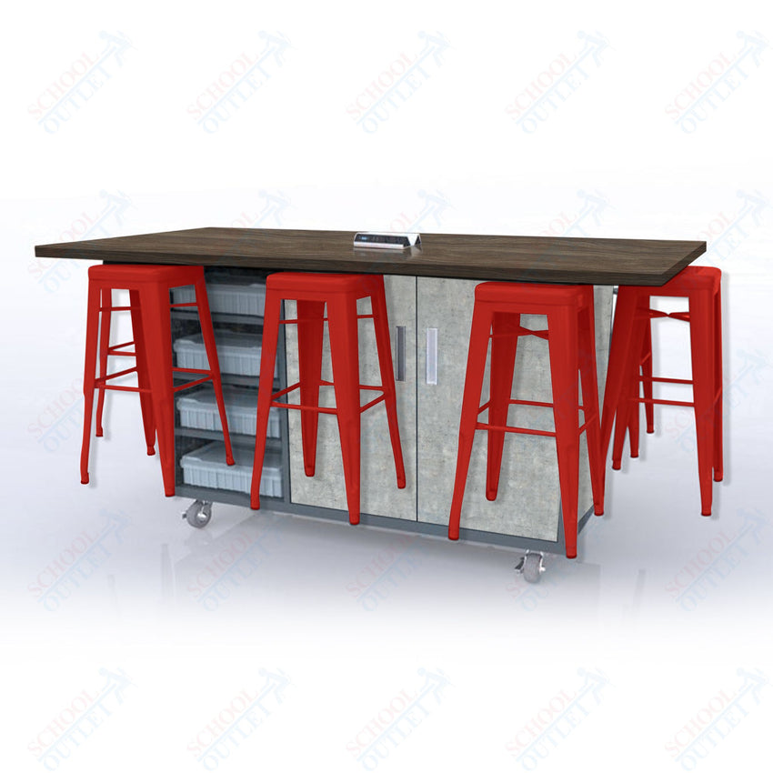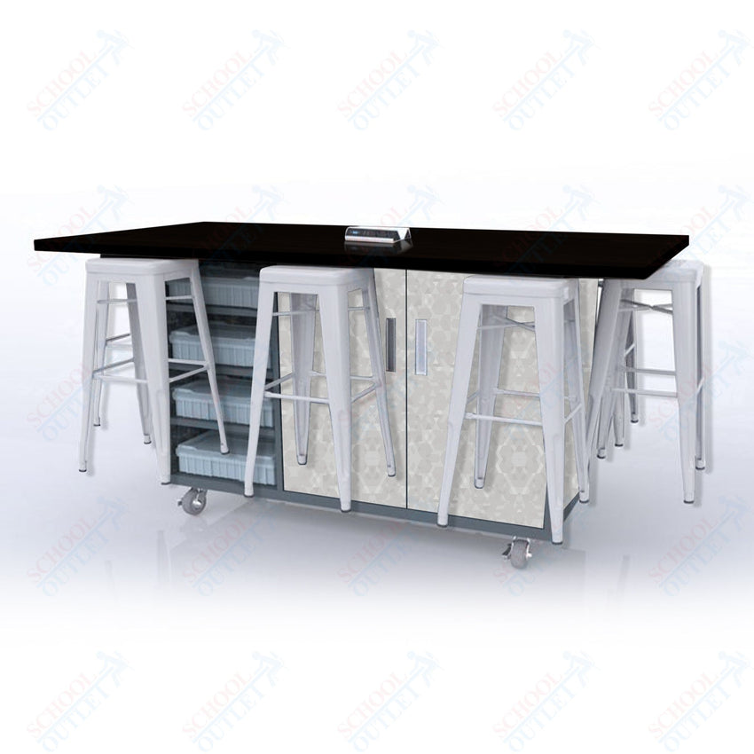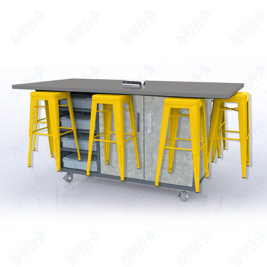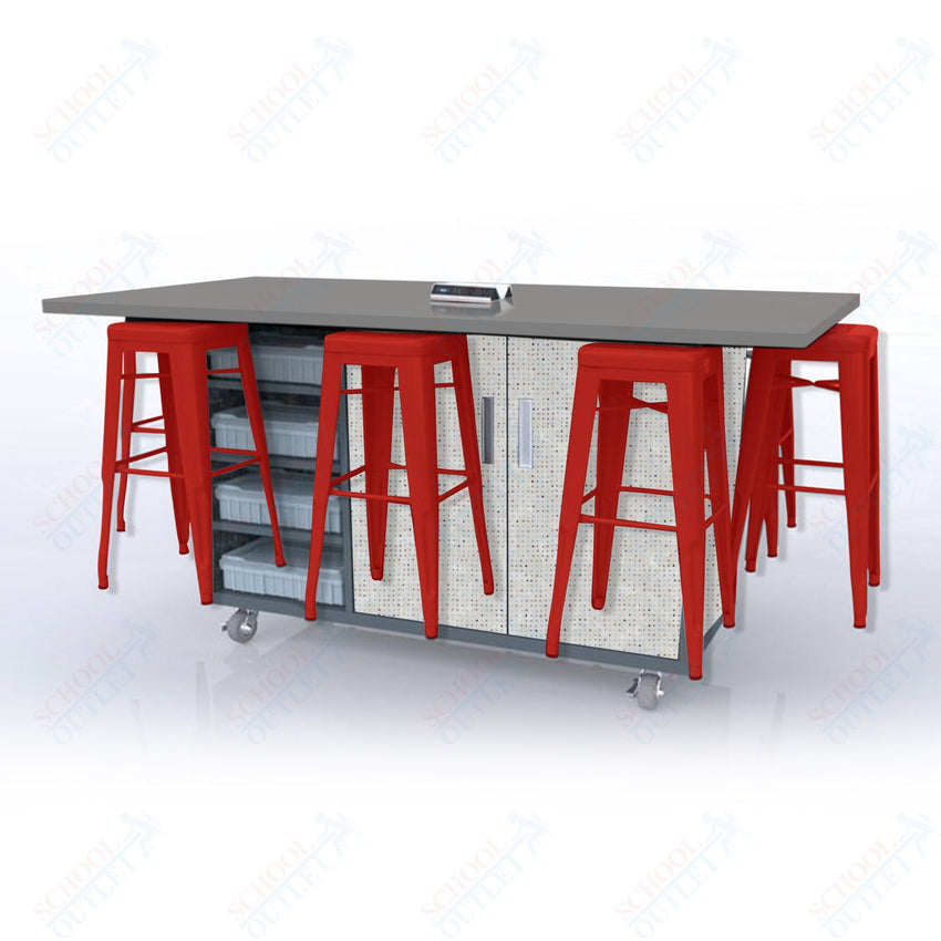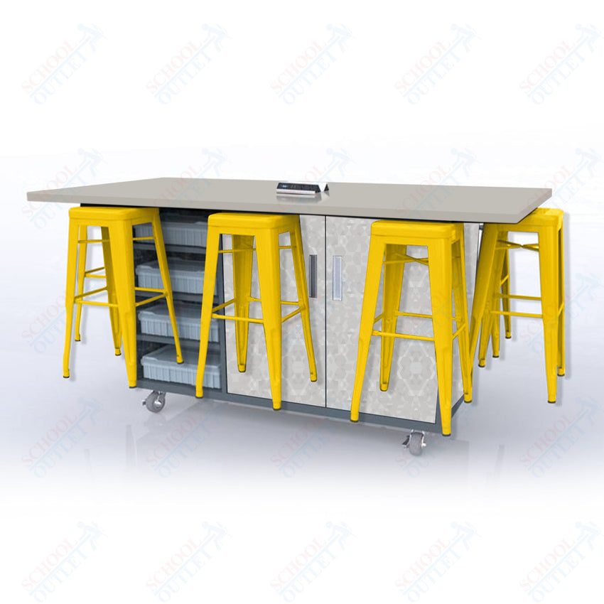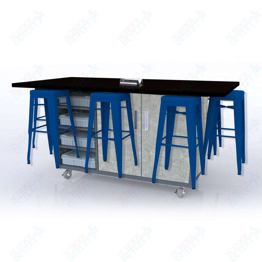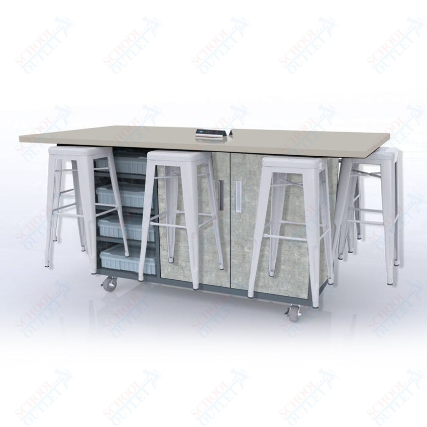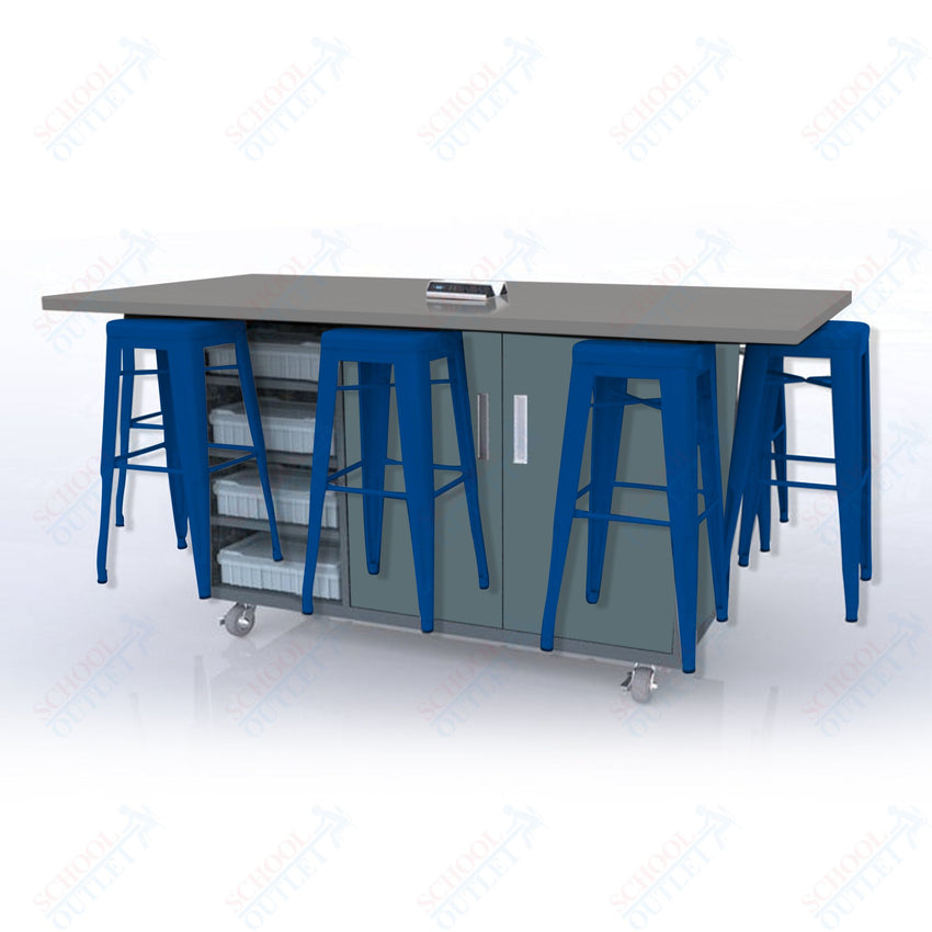 CEF ED8 Table 42"H High Pressure Laminate Top, Laminate Base with 8 Stools, Storage bins, and Electrical Outlets Included.