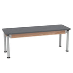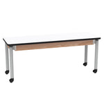 A perfect solution for ADA requirements with the ability to adjust in 2cm increments from 27''H to 39''H in less than 30 seconds. Add 3" spacer for even more height. Adjust only one end and you have an incline table for physics, use in elementary grades or for display work. The 4-1/2''H solid oak frame with exposed metal corner braces compliment the powder-coated legs with adjustable glides. The wood is finished with a chemical resistant, earth-friendly UV finish. Optional casters sold separately.