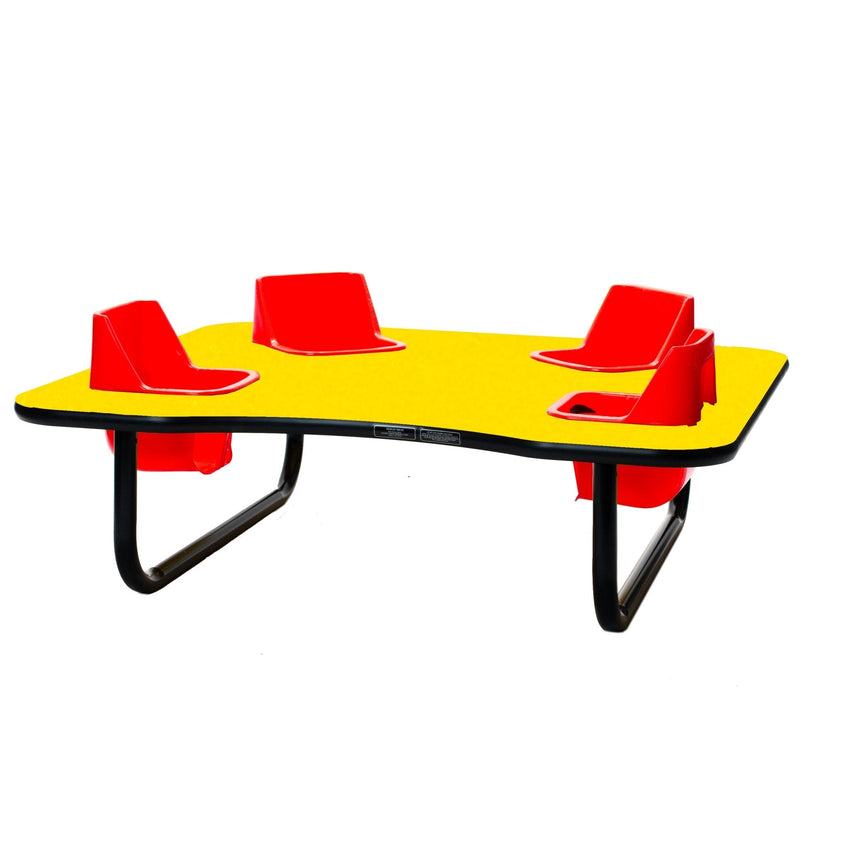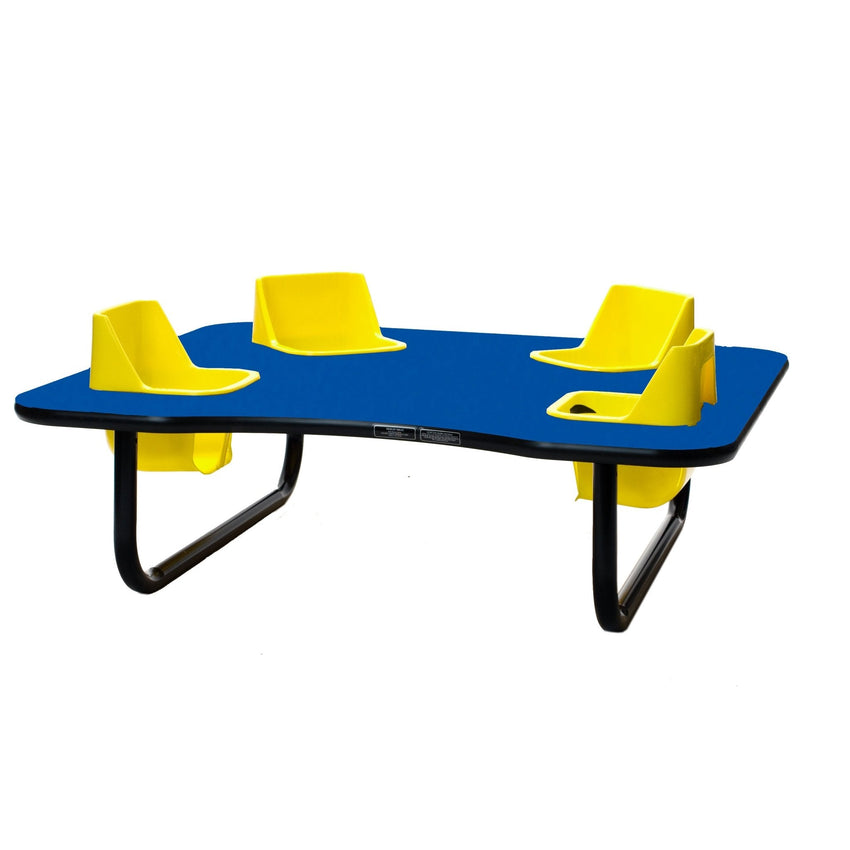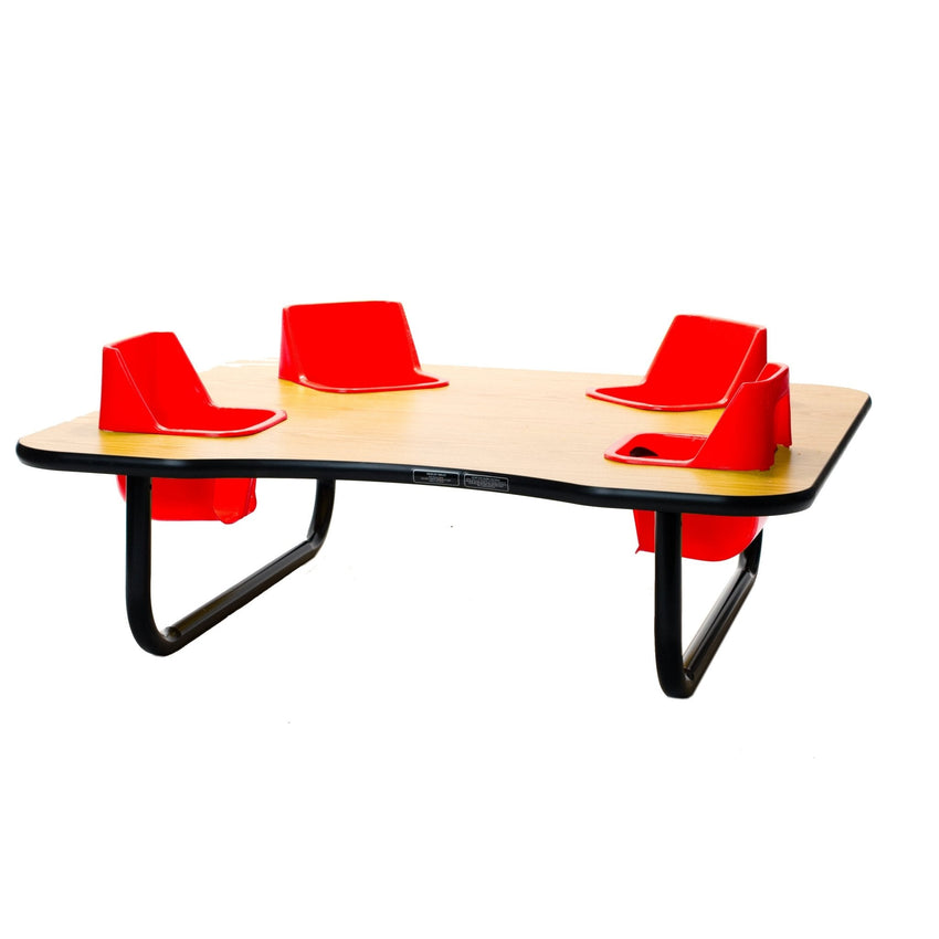 Toddler Tables' Four-Seat Table is a great choice for daycare centers because it allows teachers to interact with and feed up to four children at one time. Toddler Tables come in a variety of sizes to meet all of your childcare needs. Table height is available in 14 or 27 inches and is constructed of high quality, extremely durable 1 1/8th inch laminate top. Each polyethylene seat is easy to clean and supports up to 30 pounds. Seat belts keep your children safe
