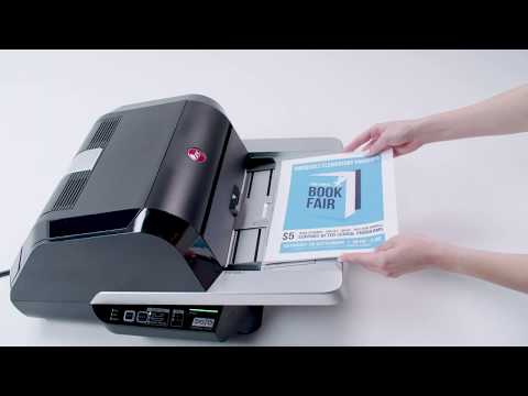 - Place documents in the tray, press run and walk away. It will automatically start once warmed up. Plus, our 3-5 mil film cartridges are auto-threading for stress-free film loading.