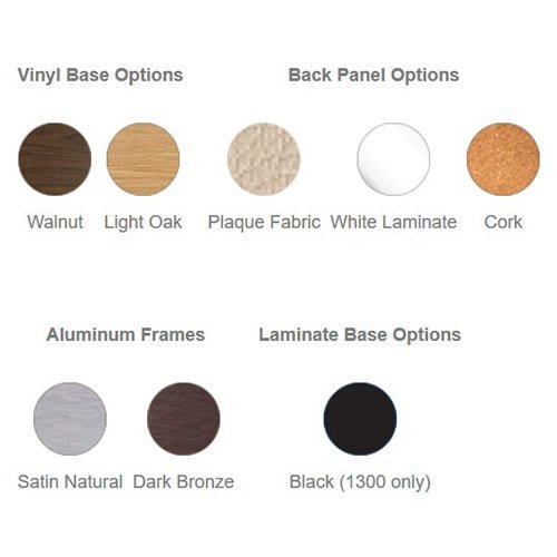 - Base offered with wood-grained vinyl, black laminate or aluminum legs