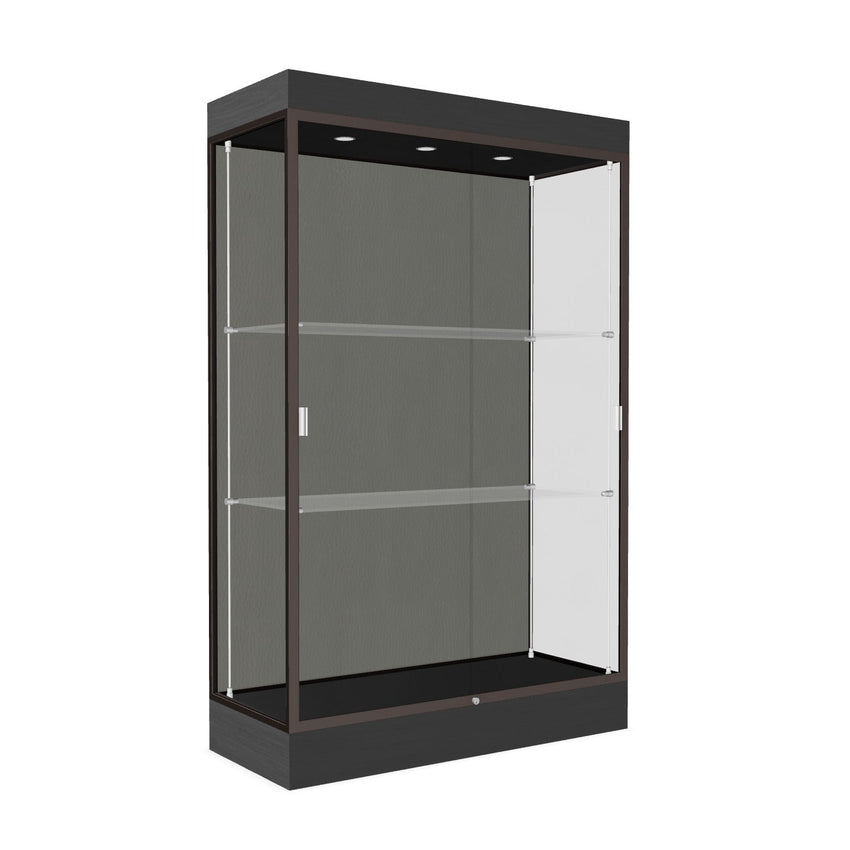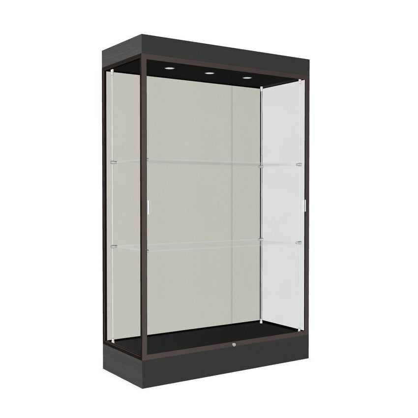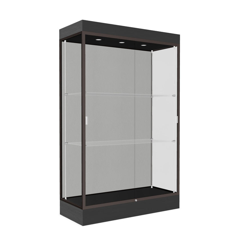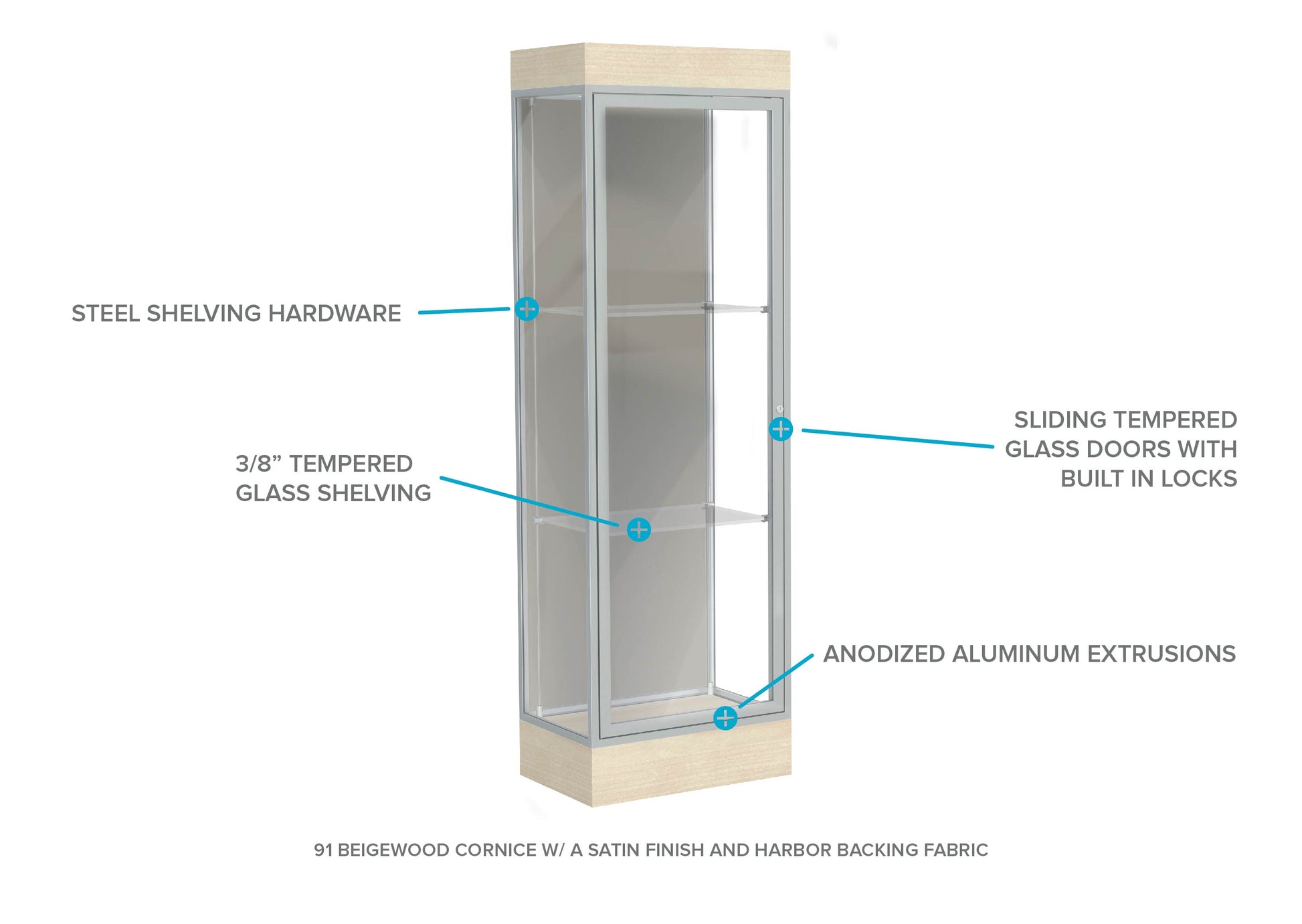 A fresh take on a traditional display case, Ghent’s Edge Display Case defines sophistication and functionality. Part of the Waddell Collection of display cases, Edge features tempered glass shelves that give the illusion of floating in mid-air. The modern tension suspension shelving system has minimal hardware, leaving items on full display, and allows adjustment for taller items. Aluminum framing, sliding doors with universal locks, and recessed LED lighting keep the design simple and elegant to allow your memorabilia to shine. All Edge Display Cases include built-in locks to ensure the security of your décor. Awards and accolades will stand out against the neutral vinyl back drop combined with laminate specifically chosen to enhance any interior aesthetic. Edge Display cases are the perfect addition to any office lobby, employee breakroom, or conference room. All cases ship to you in Ghent’s exceptional packaging and come fully assembled. Edge is backed by a Limited Lifetime Warranty and is made in the USA.