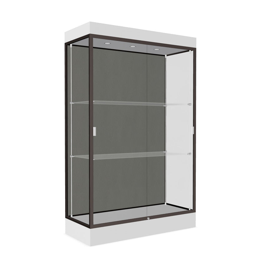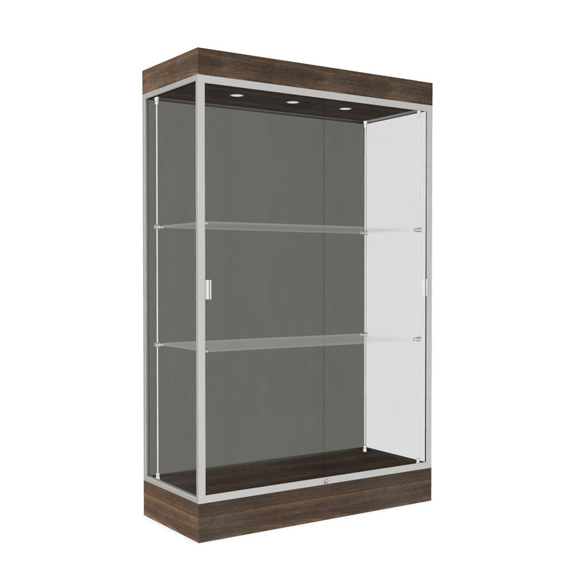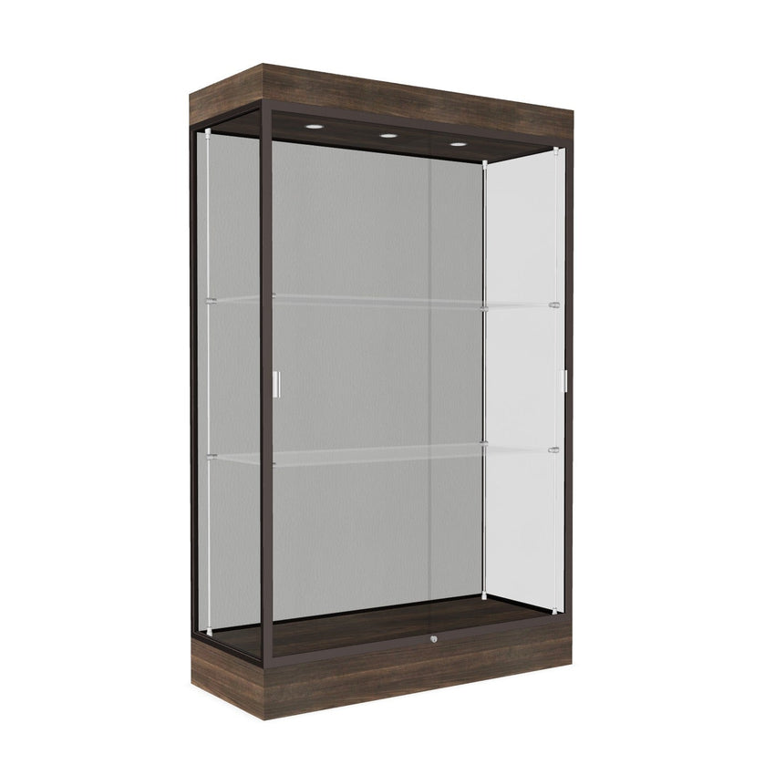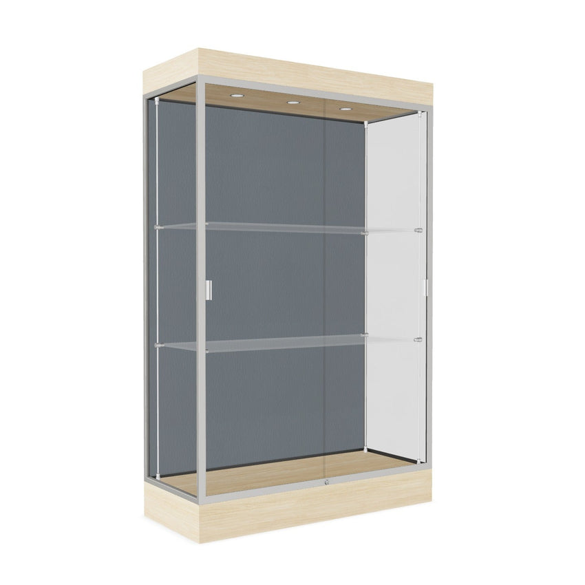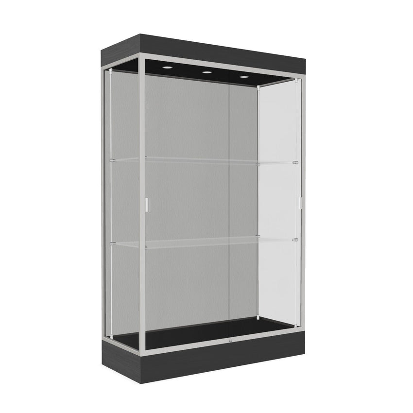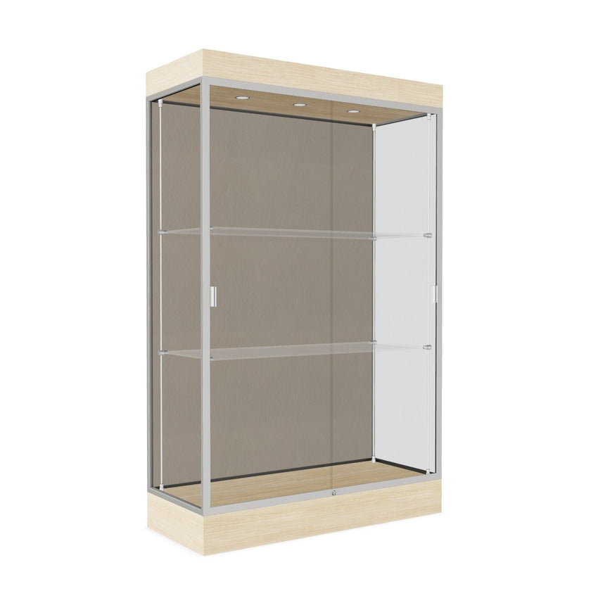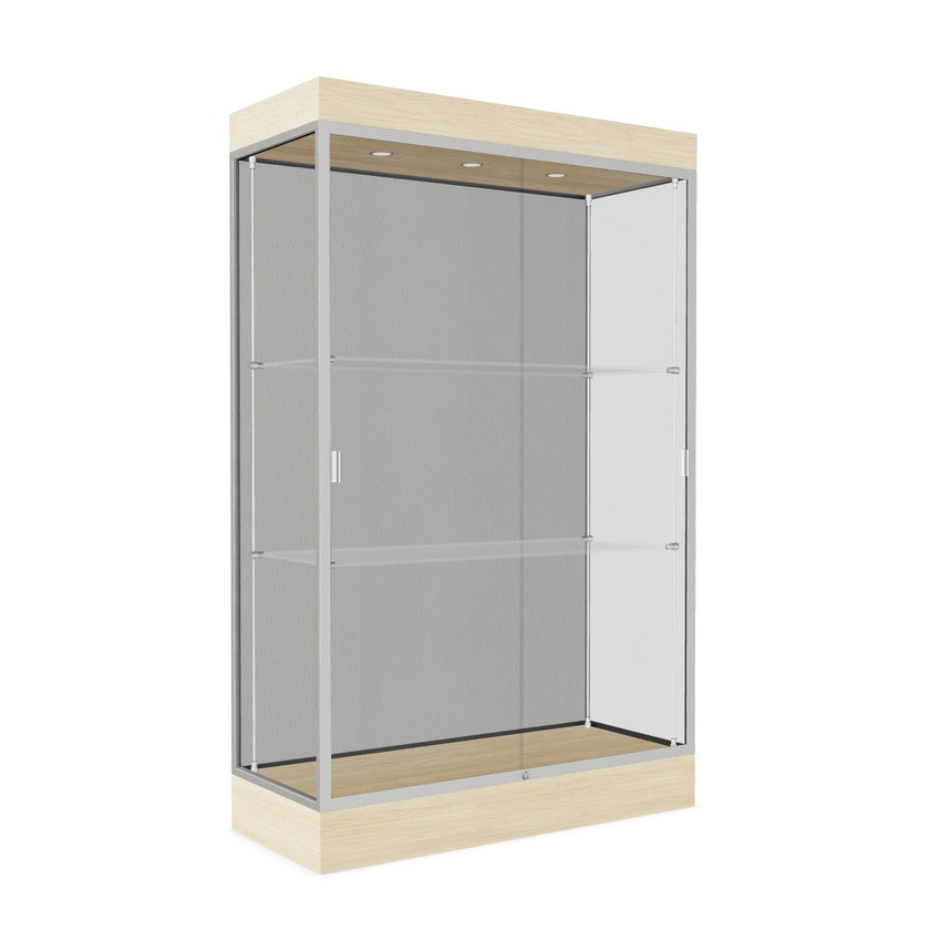 Ghent Edge Floor Display Case Lighted 6"H Laminate Base Finish, Aluminum Frame - 76"H x 48"W x 20"D (92LFXX)