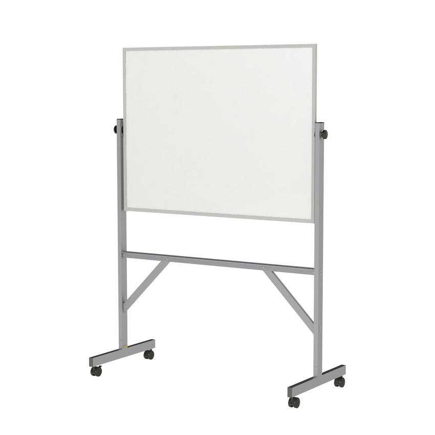 - Double-sided mobile porcelain whiteboard with magnetic writing surface.