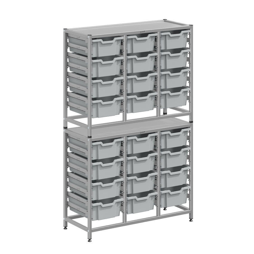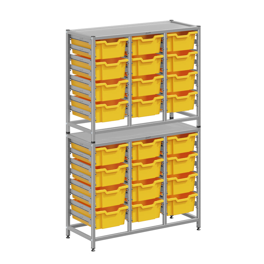 The Dynamis Combo Cart range from Gratnells is a flexible, cost-effective storage system, compatible with the award-winning Gratnells tray range. With both static frame and cart options available, the Dynamis range is perfect for any classroom environment. Gratnells trays are interchangeable between cart and frame options. You can easily move equipment around the school as needed. Dynamis Combo Cart Set 21 Silver (44) with feet 24- 6 inch deep Trays