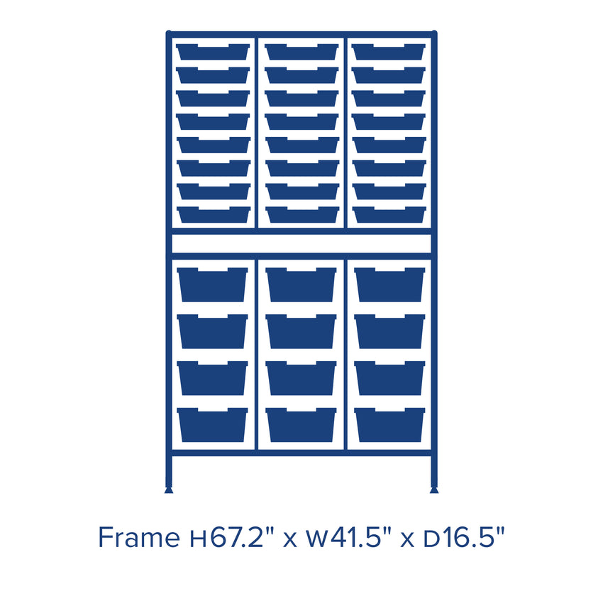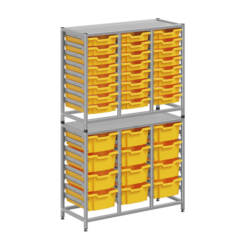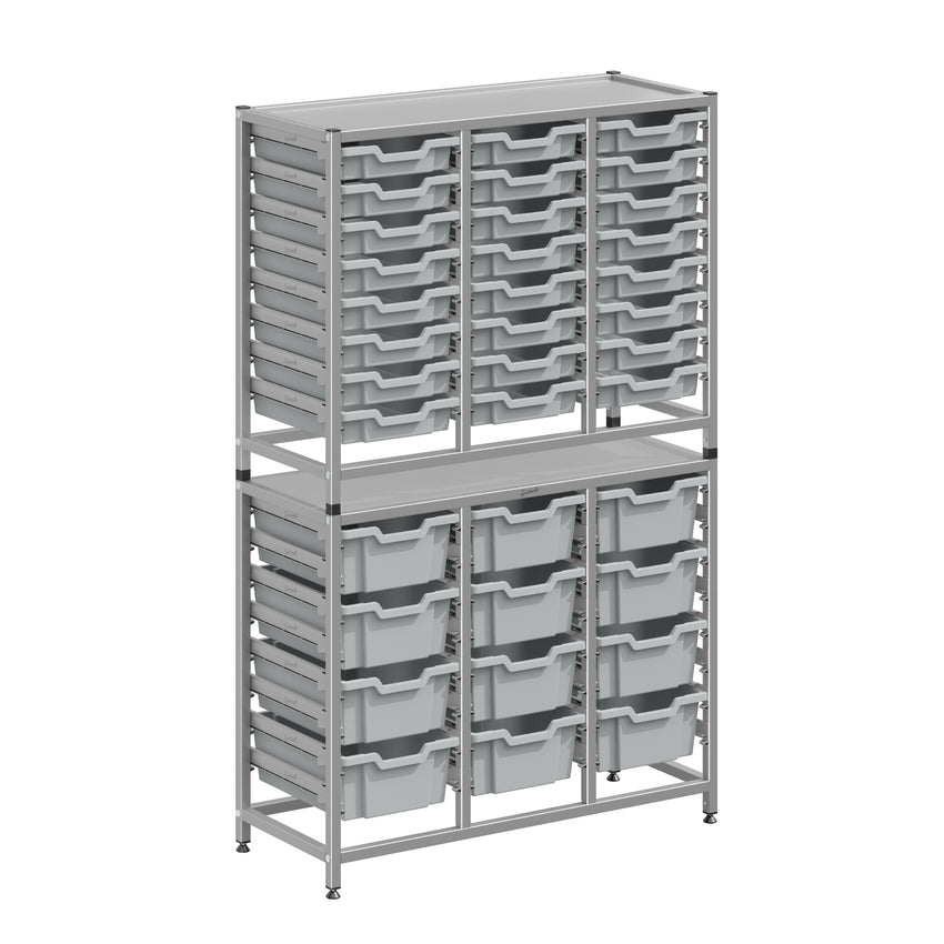 The Dynamis Combo Cart range from Gratnells is a flexible, cost-effective storage system, compatible with the award-winning Gratnells tray range. With both static frame and cart options available, the Dynamis range is perfect for any classroom environment. Gratnells trays are interchangeable between cart and frame options. You can easily move equipment around the school as needed. Dynamis Combo Cart Set 19 Silver (44) with feet 24- 3 inch and 12- 6 inch deep Trays