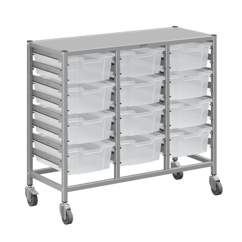 Gratnells Dynamis Lab & Healthcare Mid Triple Cart Silver with Casters and 12 Deep Trays (GRA-DYAM344-XX-002)