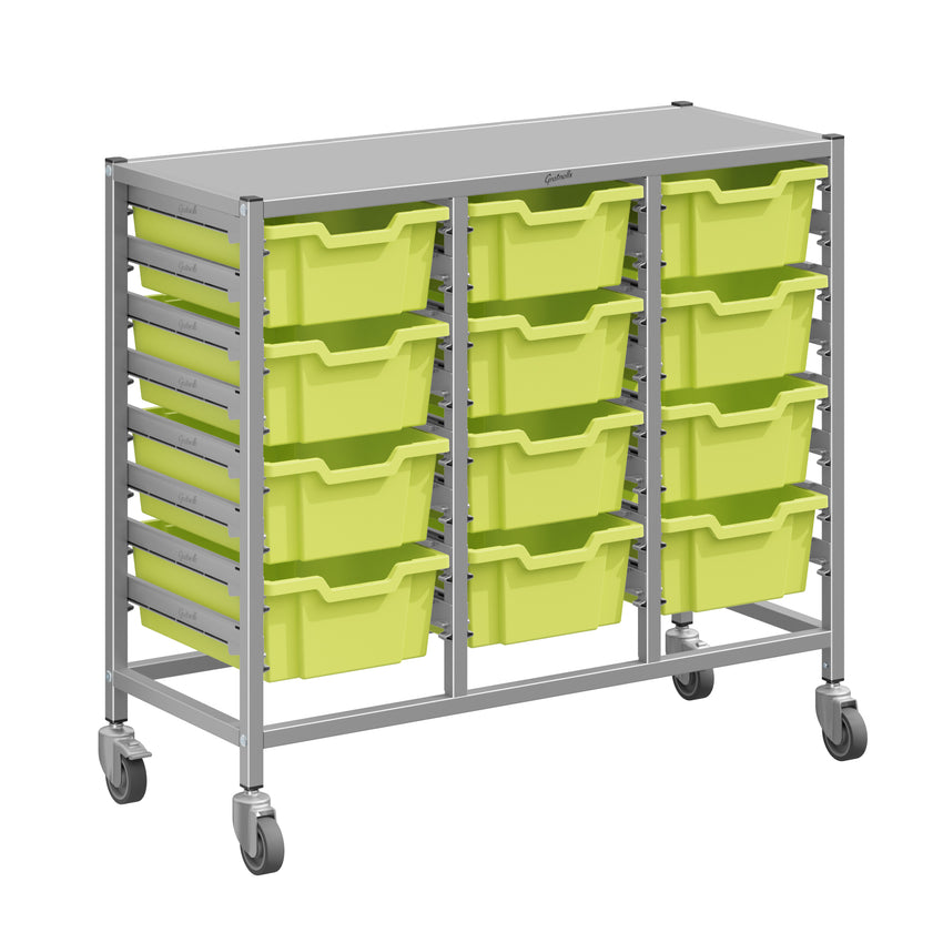 The Dynamis Triple Cart range from Gratnells is a flexible, cost-effective storage system, compatible with the award-winning Gratnells tray range. With both static frame and cart options available, The Dynamis Triple Cart range is perfect for any classroom environment. Gratnells trays are interchangeable between cart and frame options. You can easily move equipment around the school as needed. Dynamis Triple Cart Set 7 Silver (44) with 3" 2 Braked Casters & Optional Feet and 12 , 6 inch deep Trays