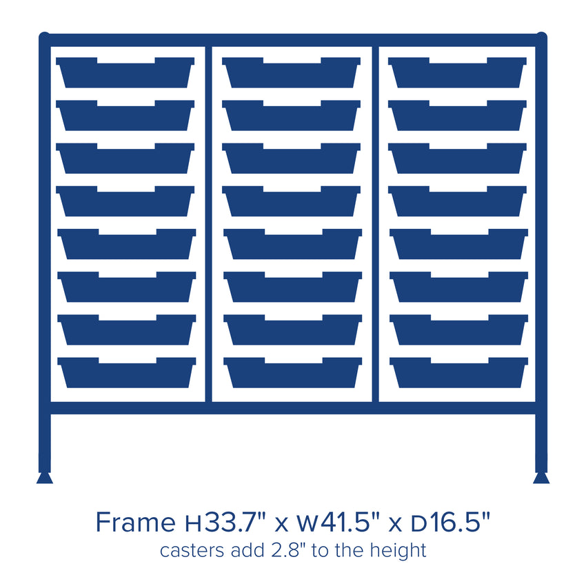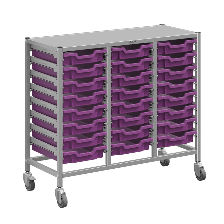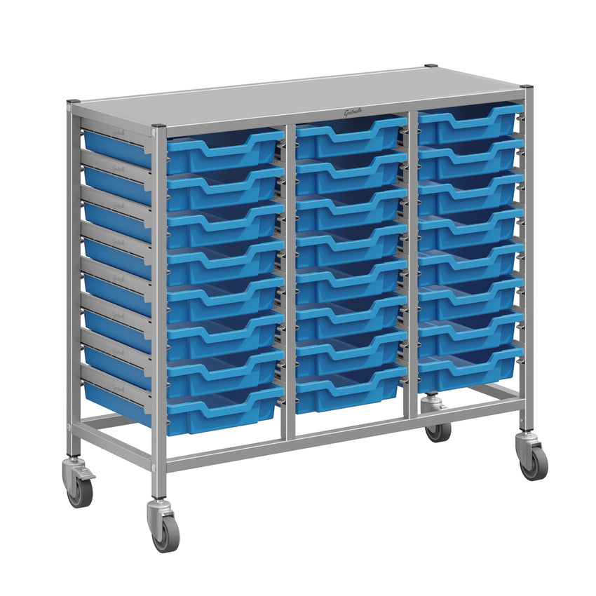 The Dynamis Triple Cart range from Gratnells is a flexible, cost-effective storage system, compatible with the award-winning Gratnells tray range. With both static frame and cart options available, the Dynamis range is perfect for any classroom environment. Gratnells trays are interchangeable between cart and frame options. You can easily move equipment around the school as needed. Dynamis Triple Cart Set 3 Silver (44) with 3" 2 Braked Casters & Optional Feet and 24 , 3 inch deep Trays