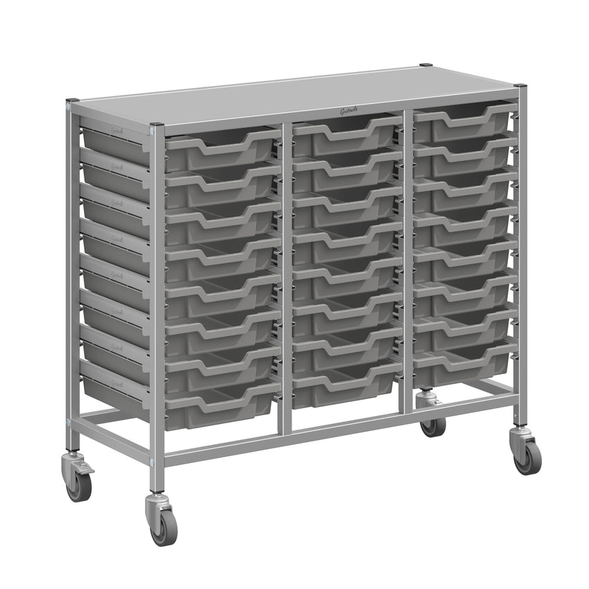 Gratnells Dynamis Lab & Healthcare Mid Triple Cart Silver with Casters and 24 Shallow Trays (GRA-DYAM344-XX-001)