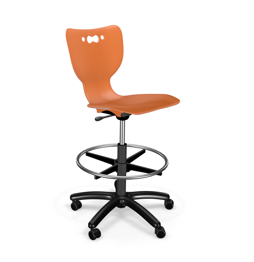 The Hierarchy 5-Star Stool by Mooreco combines modern styling with traditional task chair stability. These stools have a heavy-duty plastic 5-star base and five rolling casters that will last for many years. The ergonomic seat features an integrated carry handle for simple transport and setting up the learning environment, as well as easy position changes. Stools have a pneumatic height adjustment range of 23 to 33 inches.