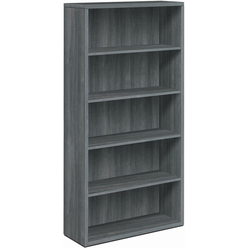 This tall bookcase delivers durability, sophistication, and dependable storage for professional spaces. Constructed from high-performance solid-core particleboard with a resilient laminate surface, it withstands scratches, spills, and daily wear with ease. The Sterling Ash finish adds a sleek, modern aesthetic that complements a variety of office settings. Featuring five fixed shelves, it provides ample space for books, binders, and décor, maintaining a clean and organized look. The fully finished back and square-corner edge detail enhance its refined appearance from every angle. With 3/4" thick interior shelves and 1-1/8" thick top, bottom, and side panels, the bookcase ensures lasting strength and stability. Leveling glides allow easy adjustments to maintain perfect balance on uneven floors without lifting. Ideal for executive offices, meeting rooms, or shared work areas, this bookcase offers practical elegance and lasting value.