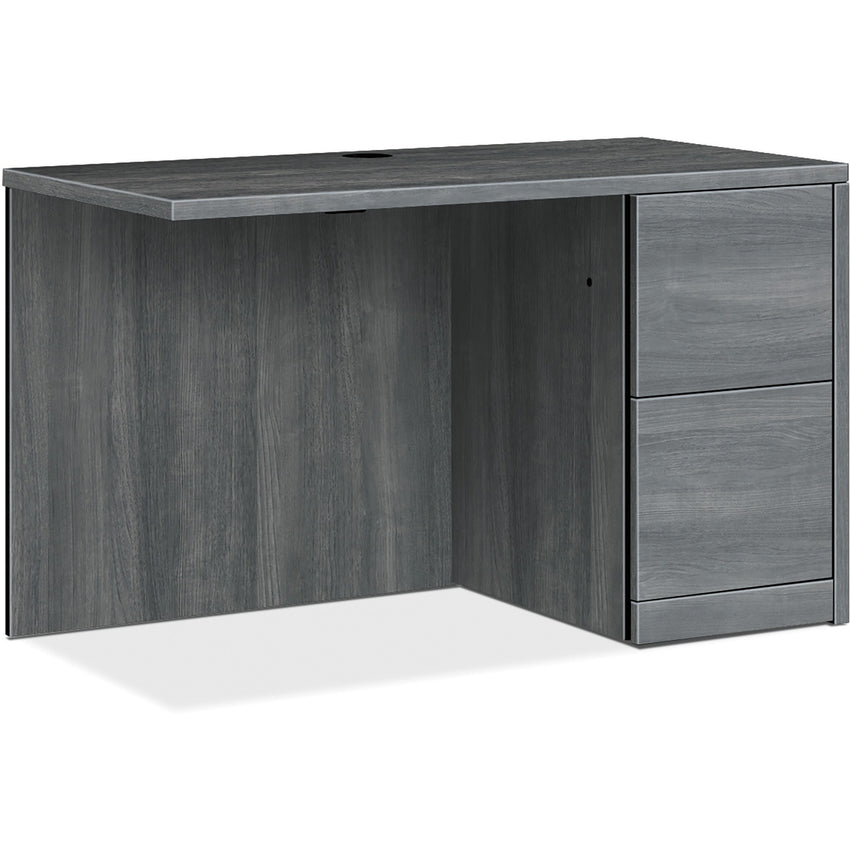 Upgrade your workspace with this right-pedestal return, designed to seamlessly integrate with desks, shells, or corner units for a functional and cohesive office setup. Built from durable, high-performance materials, it features a solid inner-frame construction and a Sterling Ash laminate finish that resists scratches, spills, and daily wear. The smooth, flat edges and full-height modesty panel provide a polished, professional appearance suitable for any modern workspace. Two spacious, locking file drawers offer secure storage for important documents and accommodate both letter- and legal-size files with integrated hangrails. Each five-sided drawer glides effortlessly on full-extension, ball-bearing suspension for smooth and reliable operation. Additional convenience features include a worksurface grommet and passthrough grommet for cable management, as well as a core-removable lock for easy rekeying and enhanced security.