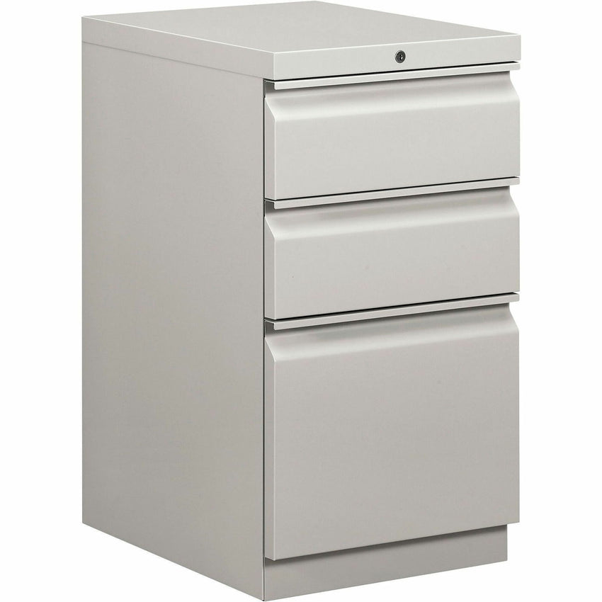 This compact freestanding pedestal offers a smart way to expand storage and keep daily essentials close at hand while fitting neatly beneath standard-height work surfaces. It includes two box drawers for organizing small supplies, plus a high-sided file drawer that supports hanging letter-size files for easy front-to-back filing. Drawer operation is smooth and reliable thanks to a combination of ball-bearing and roller suspensions that help maintain consistent performance over time. Each box drawer includes an adjustable divider to keep contents sorted, and a pencil tray is included for convenient accessory storage. A built-in counterweight helps prevent tipping for added safety, and an interchangeable locking system secures contents when needed. Fixed front casters and rear swiveling casters allow stable positioning and flexible mobility within your workspace. Ideal for maximizing organization in offices, workstations, and task setups of any size.