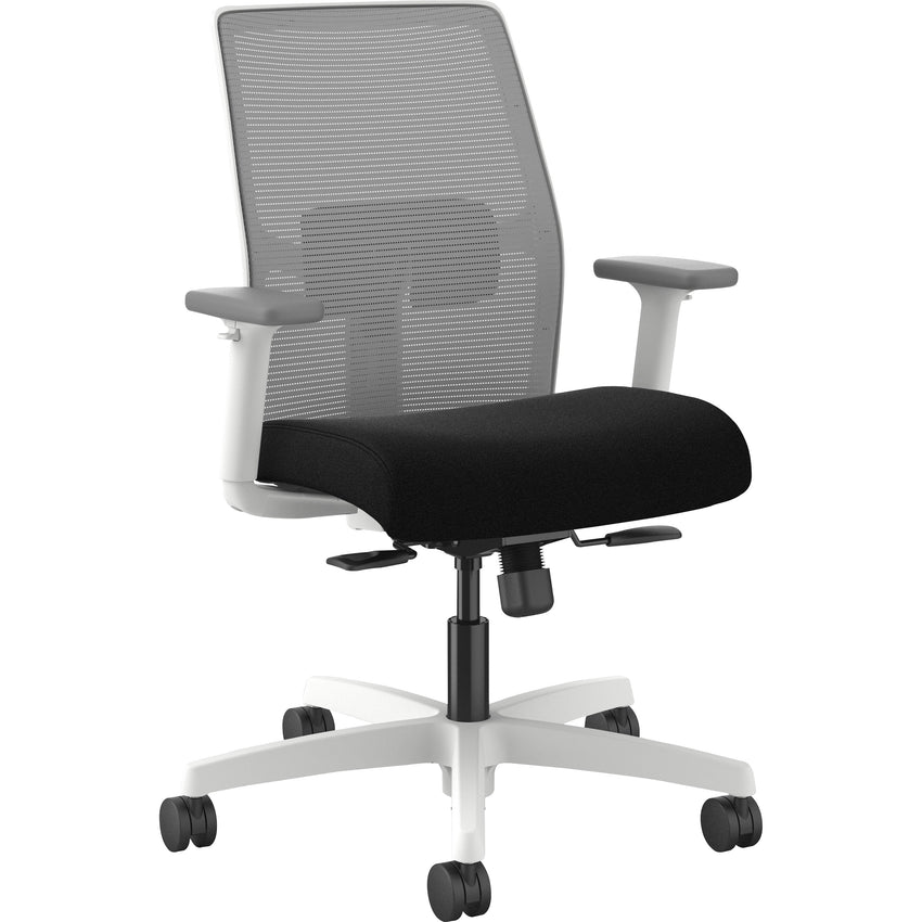 HON Ignition Low-back Task Chair (I2Y1AHFC10DW) combines modern style, ergonomic adjustability, and all-day comfort in a compact design. Its four-way stretch Fog mesh back offers natural lumbar support and promotes airflow to keep users cool, while the cushioned black fabric seat enhances comfort. Featuring a Designer White frame, this chair delivers a contemporary look that suits any office setting.